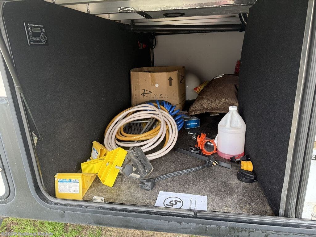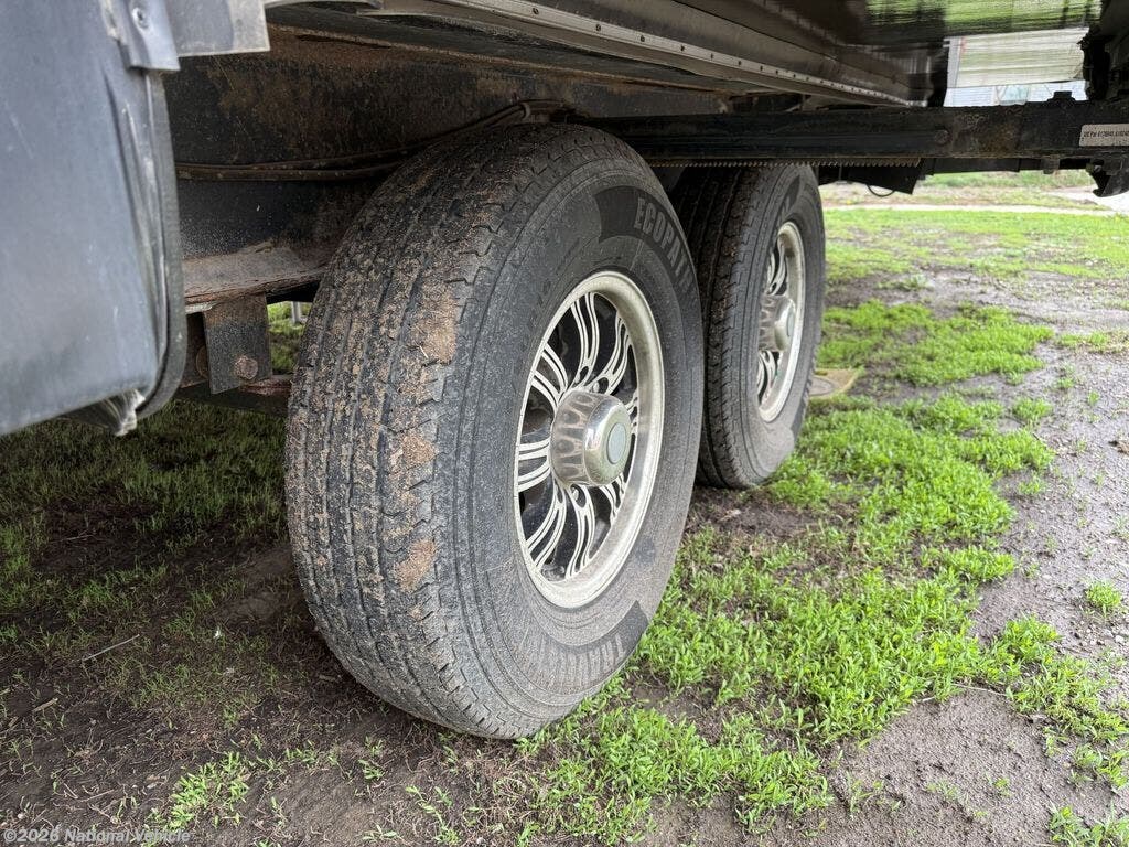 This unit is equipped with a self-leveling hydraulic jack system for effortless setup, a Demco slider hitch, and brand-new tires?making it road-ready and easy to tow.