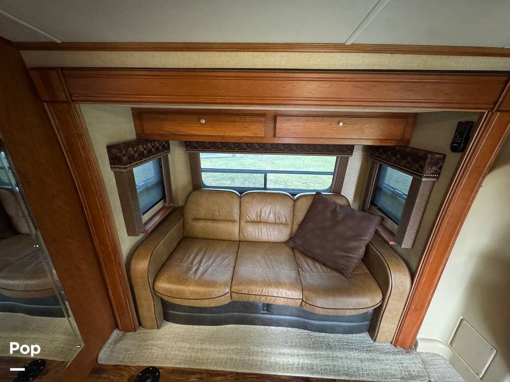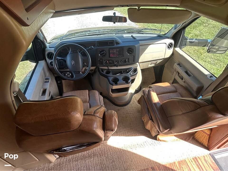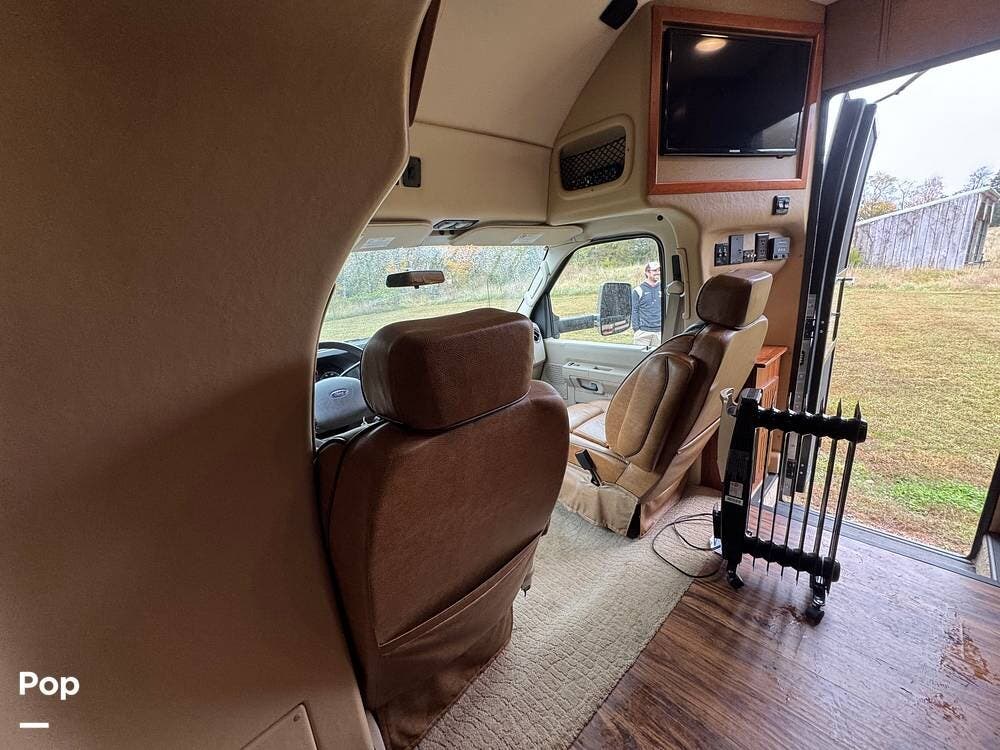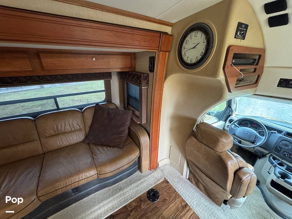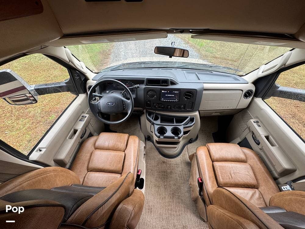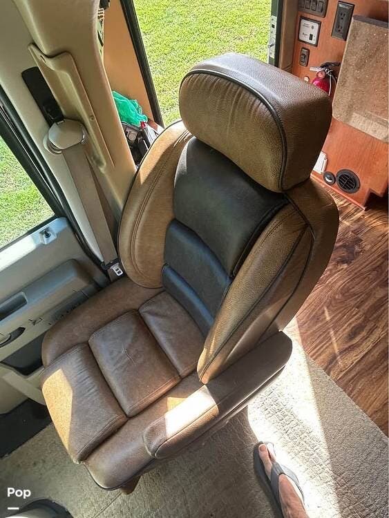 And as you enter this RV, you will notice the luxury living space with leather Capt.'s chairs for both driver and passenger for a very comfortable