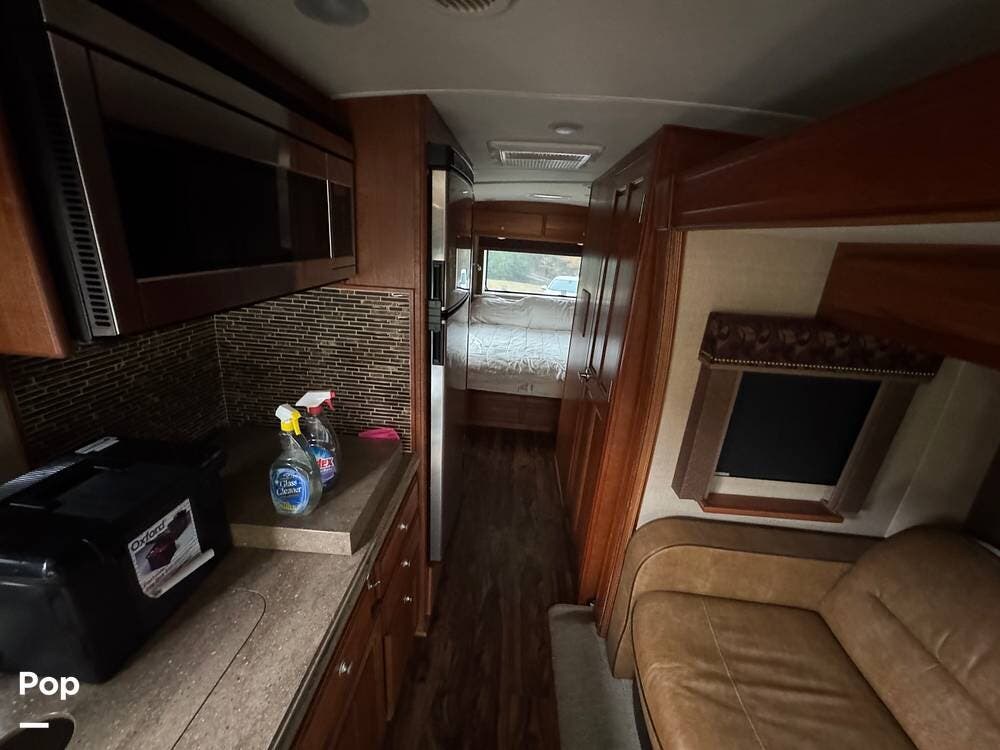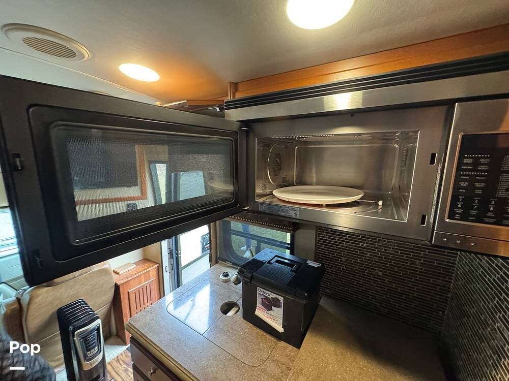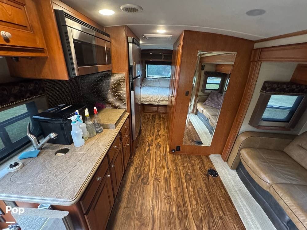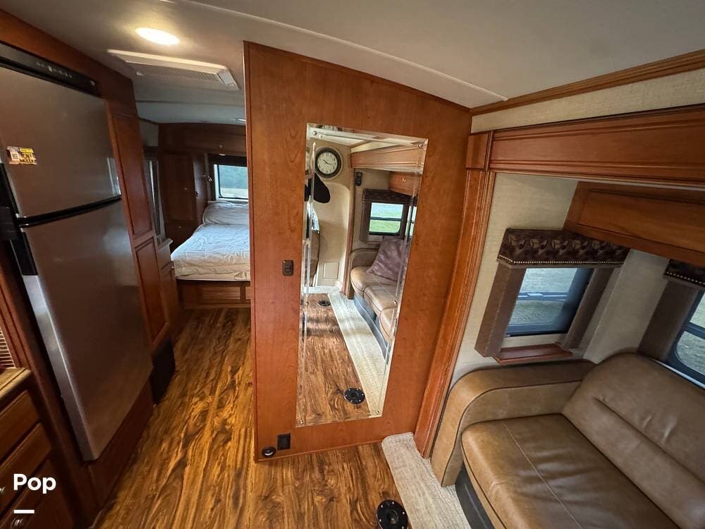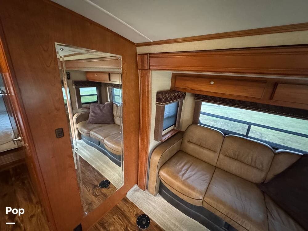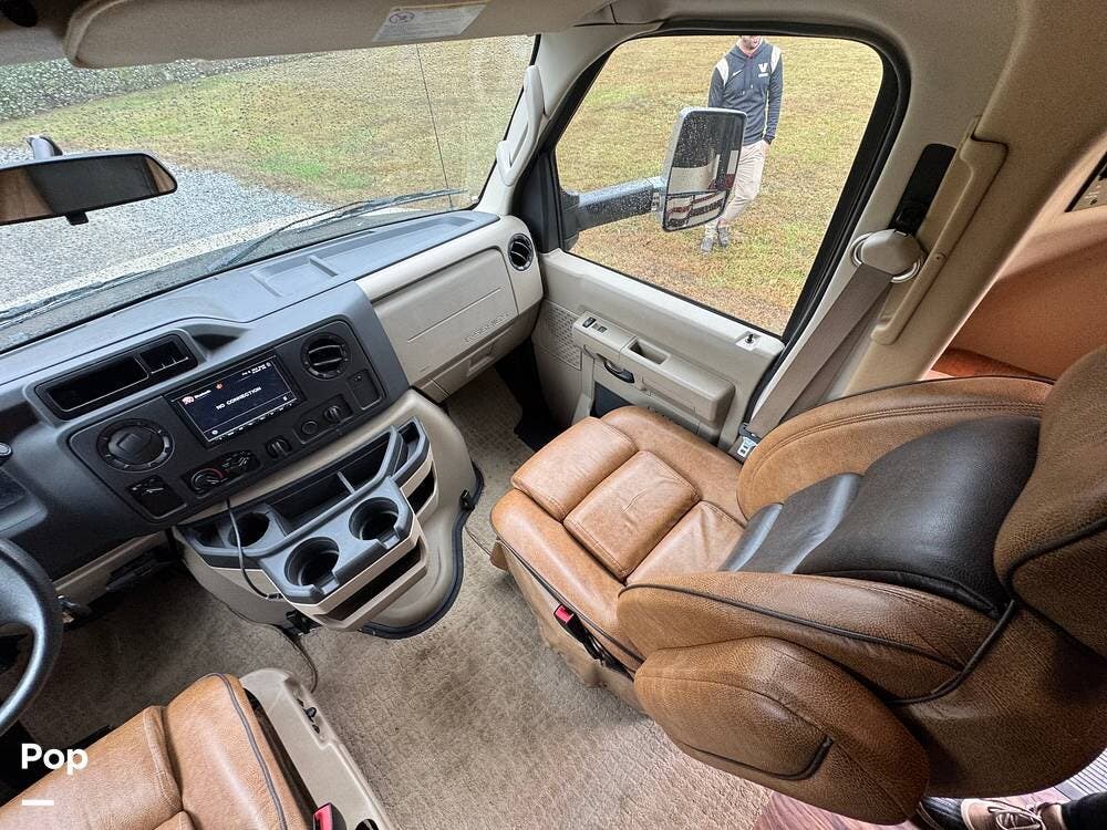 And as you enter this RV, you will notice the luxury living space with leather Capt.'s chairs for both driver and passenger for a very comfortable