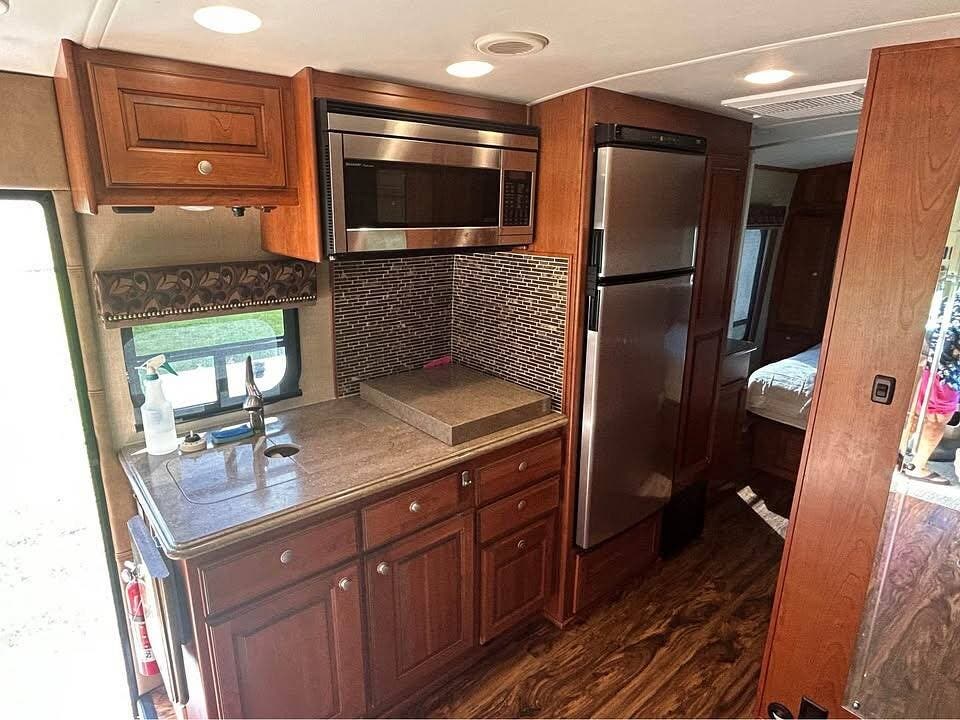 This beautiful RV is powered by a Ford 6.8L V10 Triton
