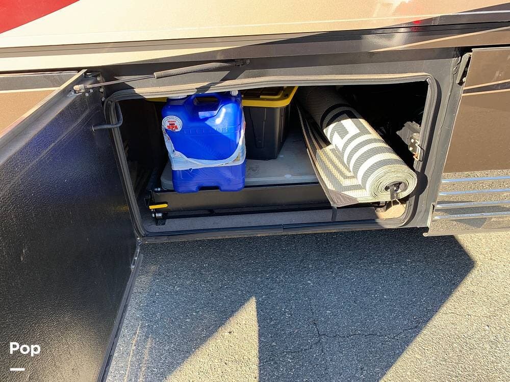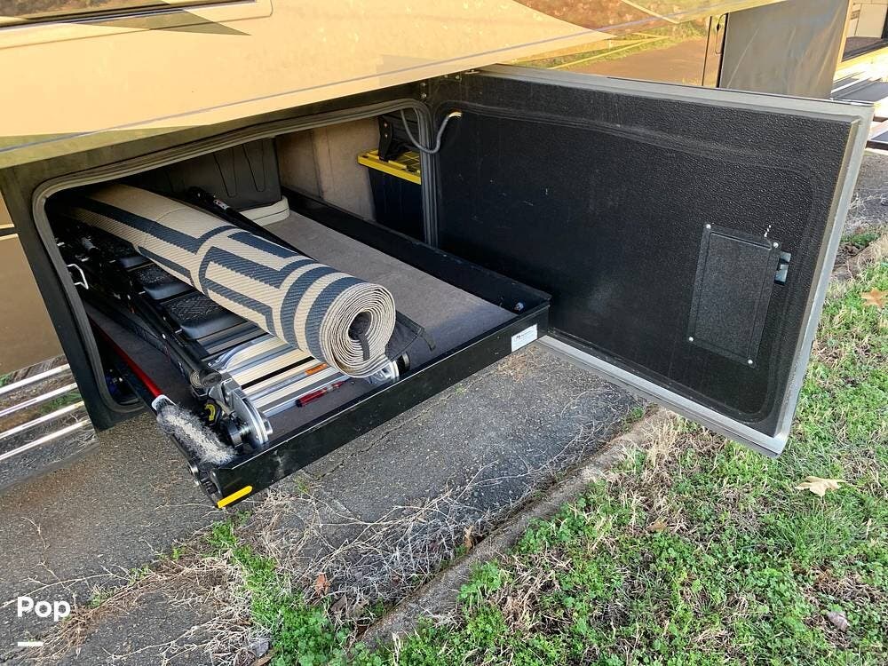 A Cummins ISL powers the coach turbocharged 450 HP engine with an Allison 3000 MH 6-speed transmission with Michelin 315/80R tires. There are all-wheel ABS brakes with full air front and rear. Highlighted are roof-integrated 2-stage powered awning with LED lights.