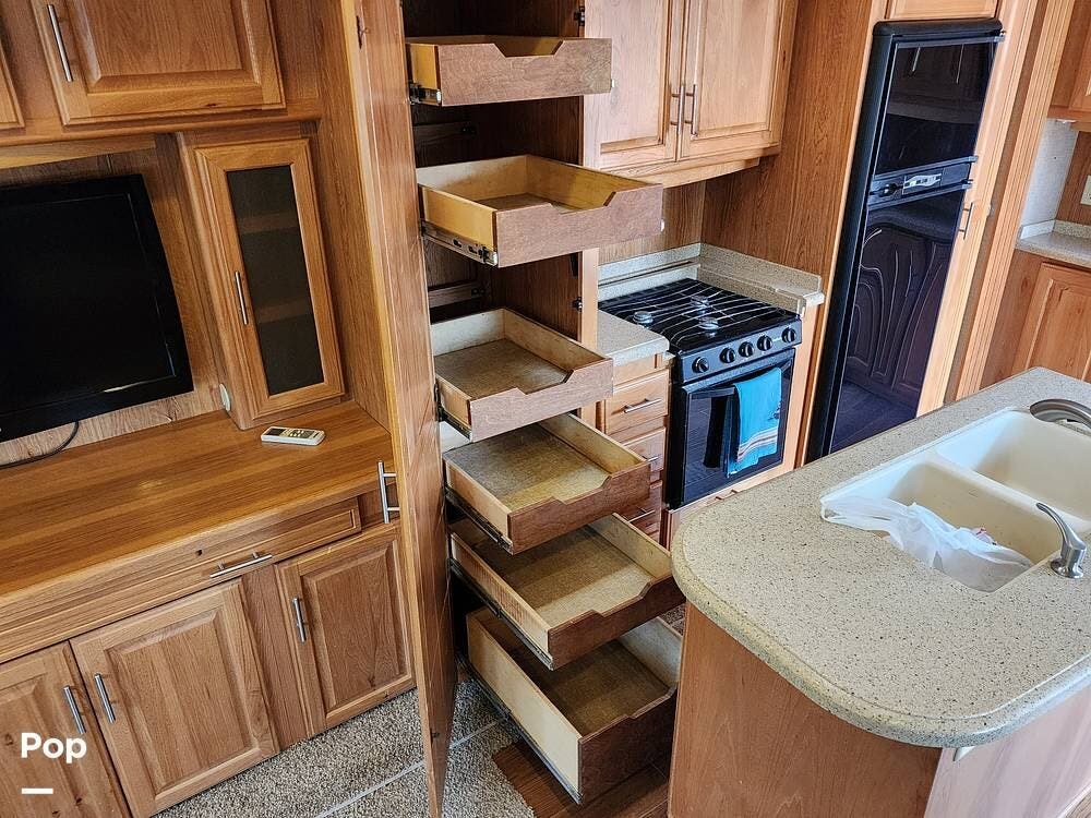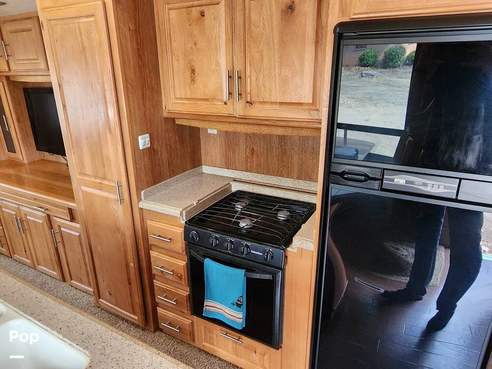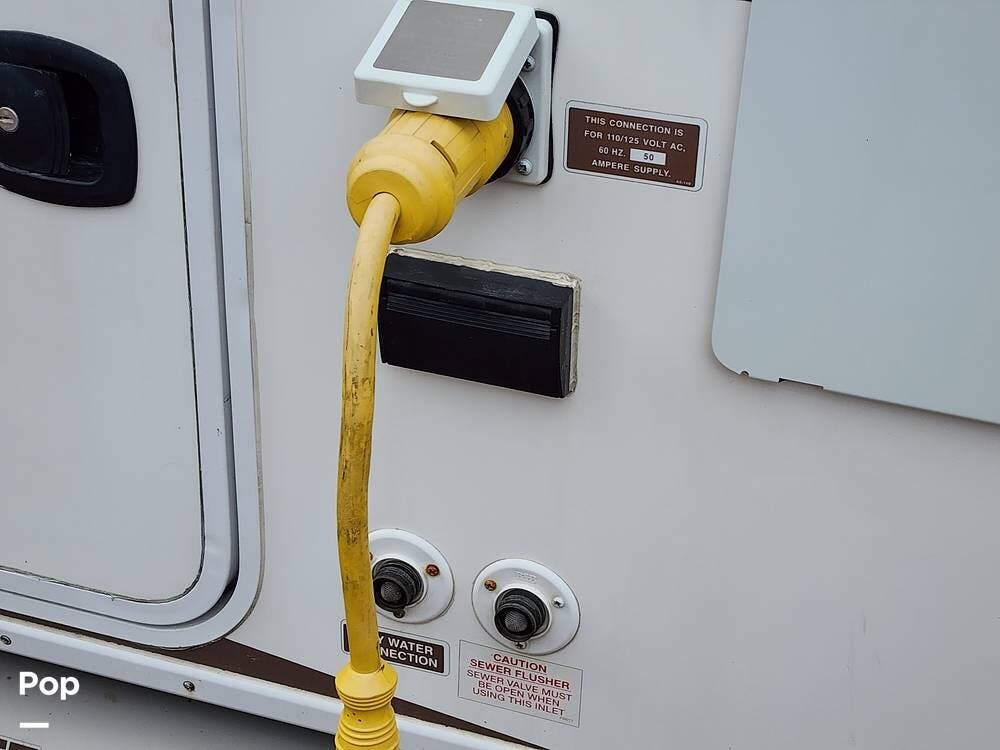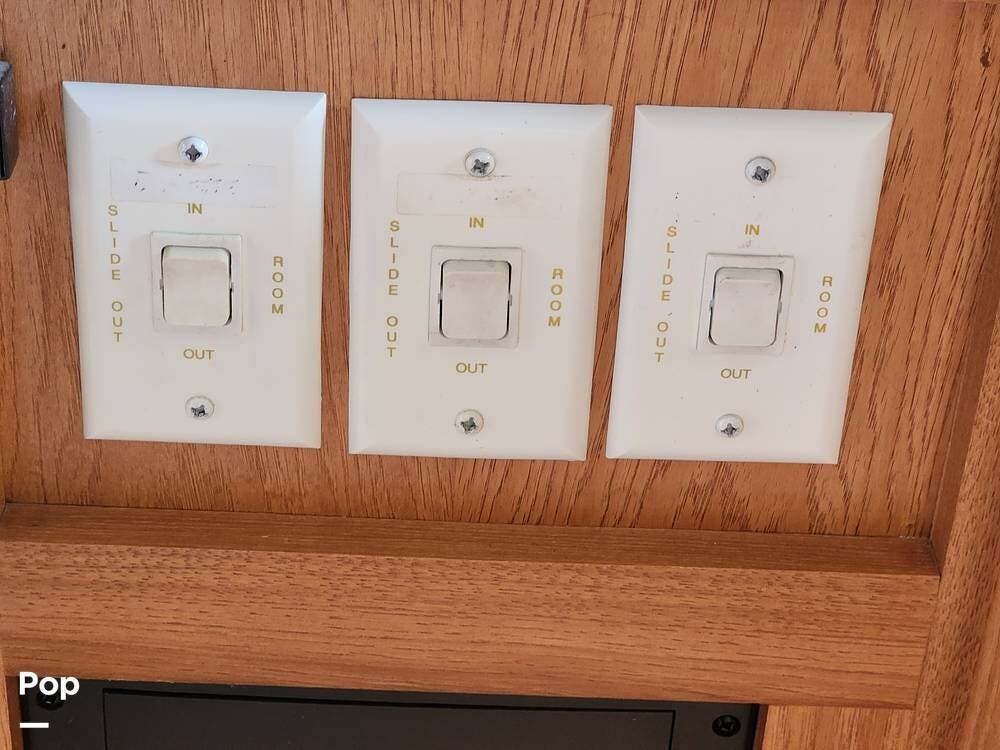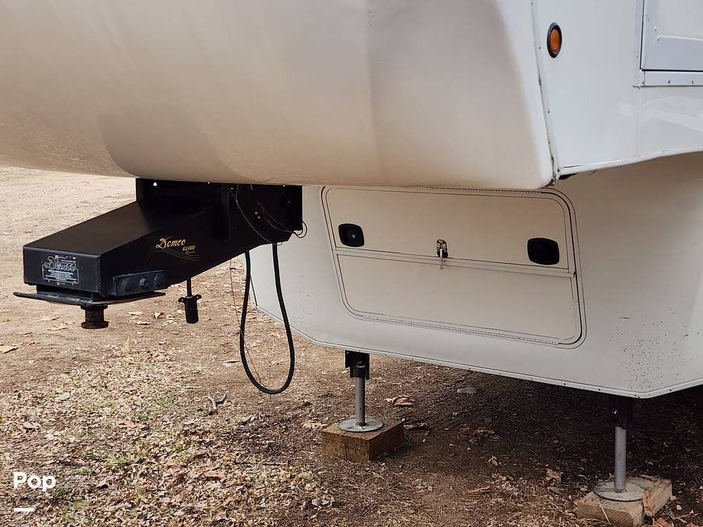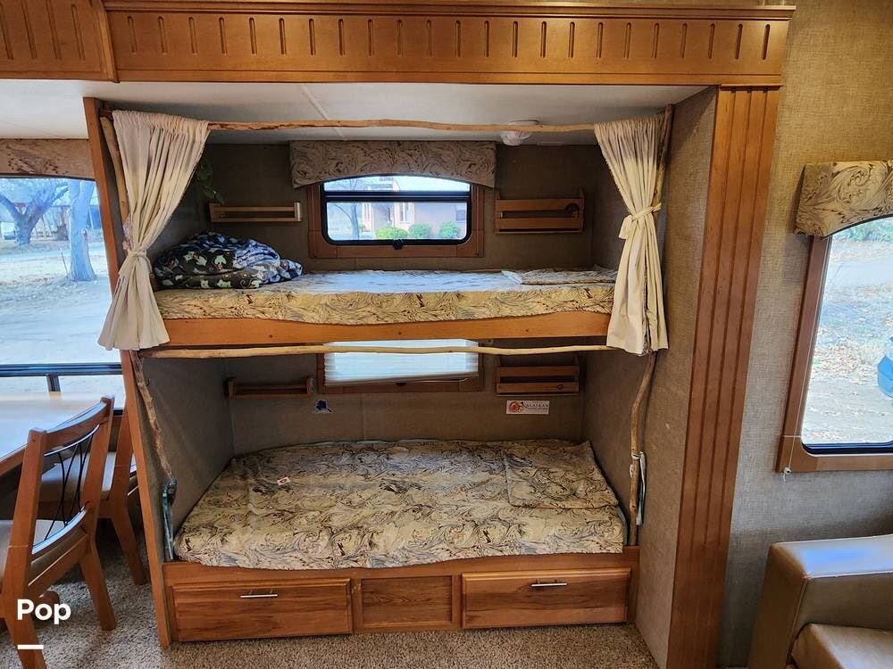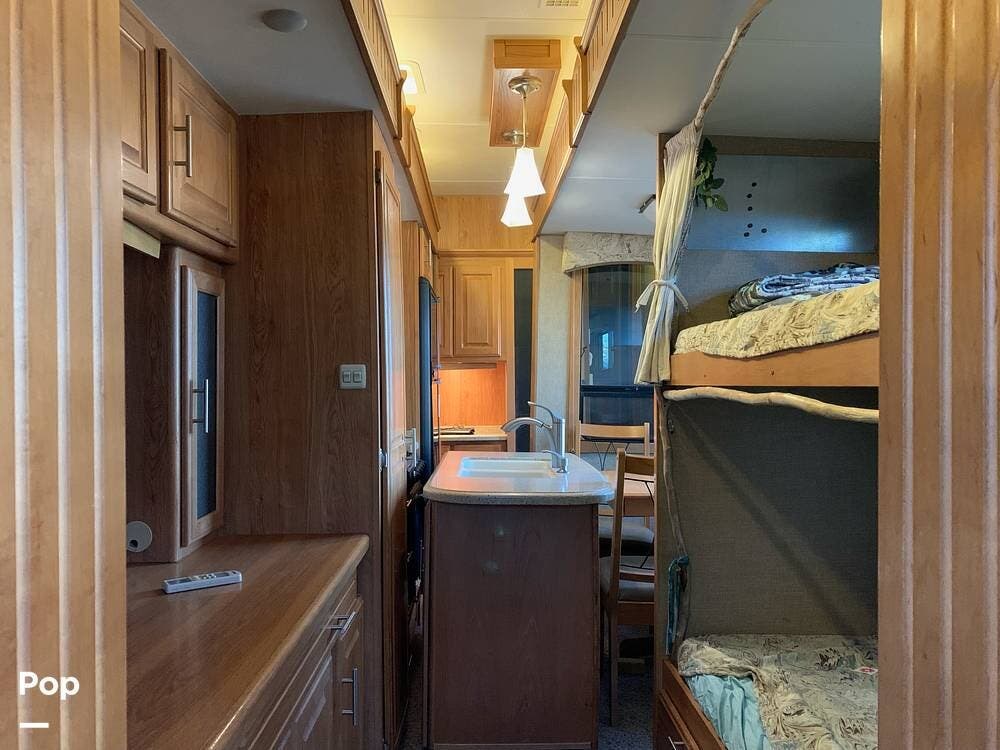 It is set up for full timing with two 40 lb propane bottles, 88 gallons of fresh water, three slides, bunk beds, a 10CF fridge, hydraulic disc brake upgrade, hydraulic leveling jacks and slides, 50 amp electrical service, 15,000 BTU air conditioner, and plenty more.