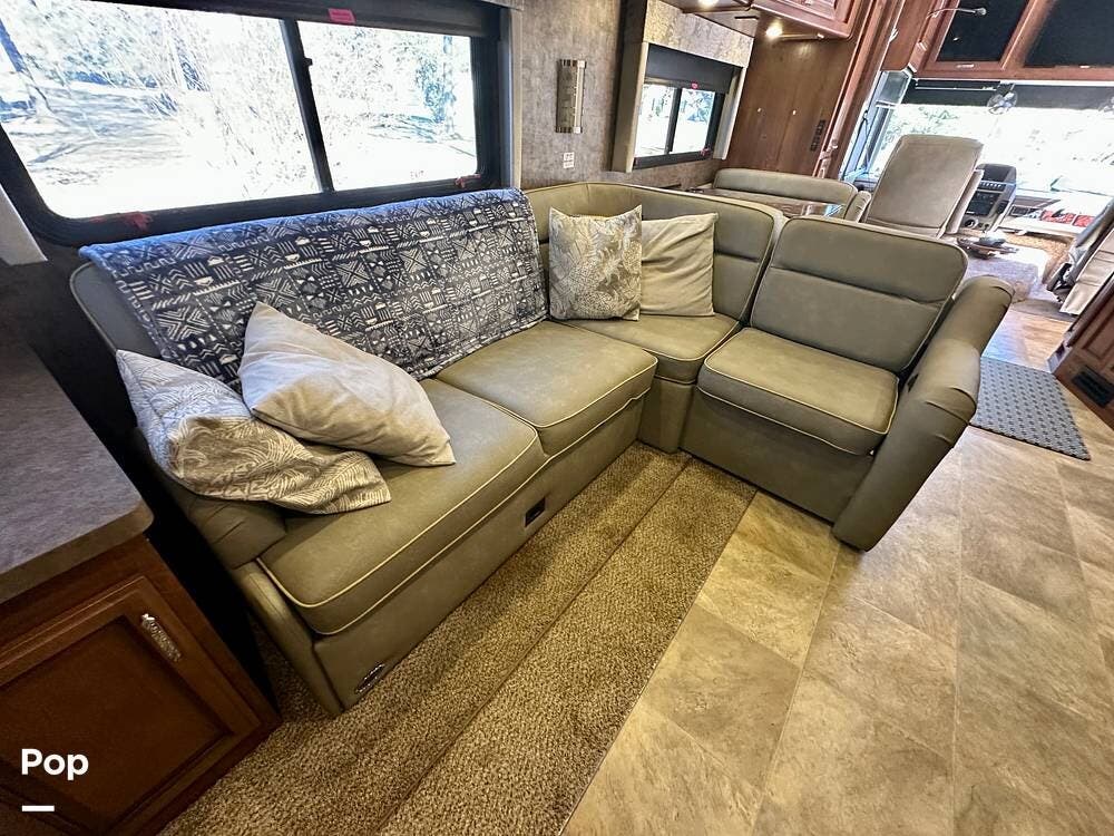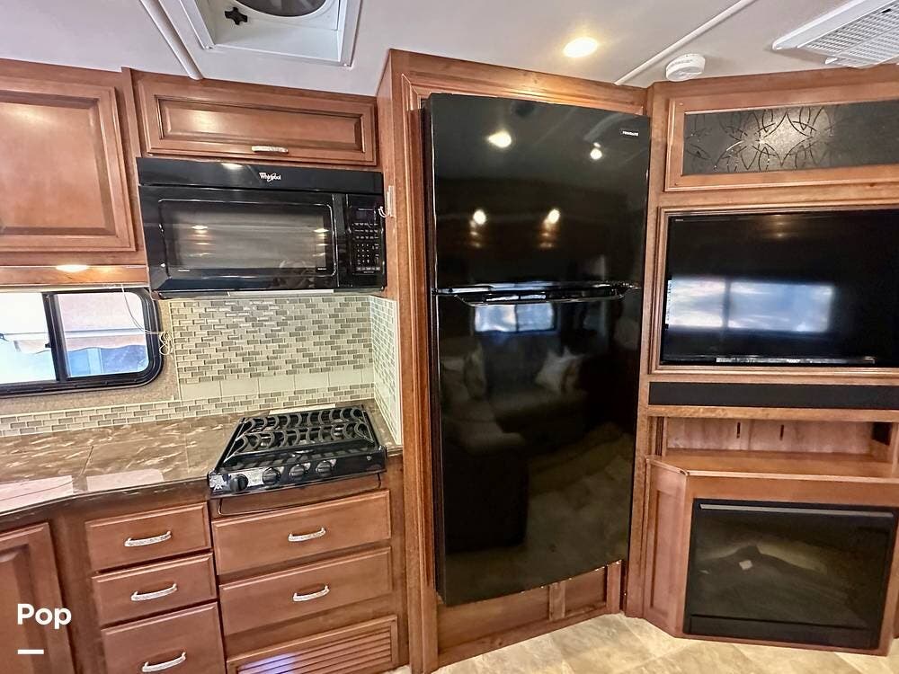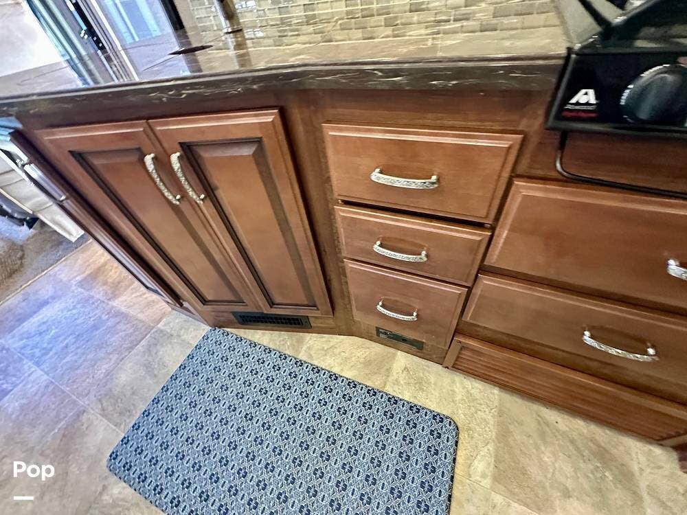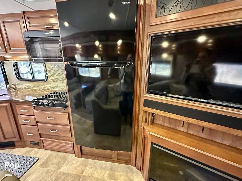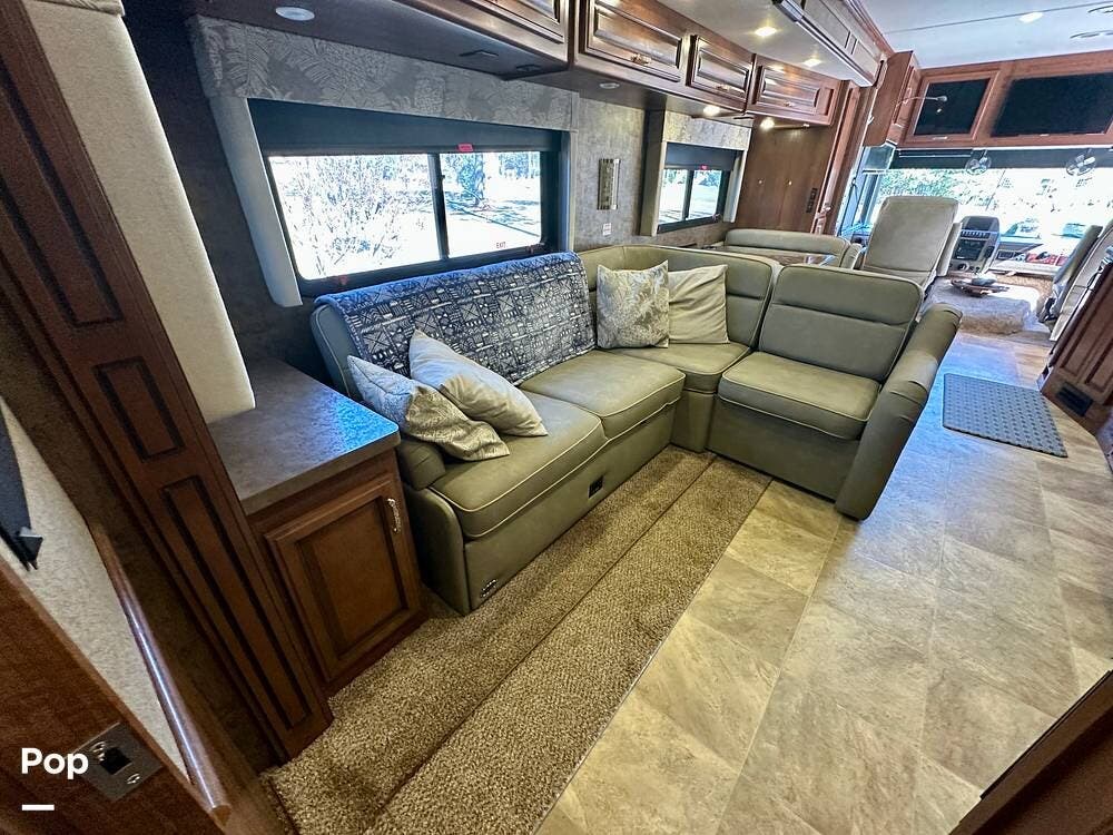 Step inside and you'll find an inviting interior with upgraded leather seating that feels both luxurious and lived-in, a residential refrigerator and freezer for extended trips, and a spacious layout that makes every mile feel like home.
