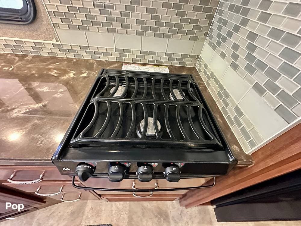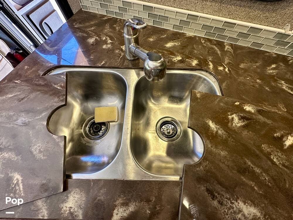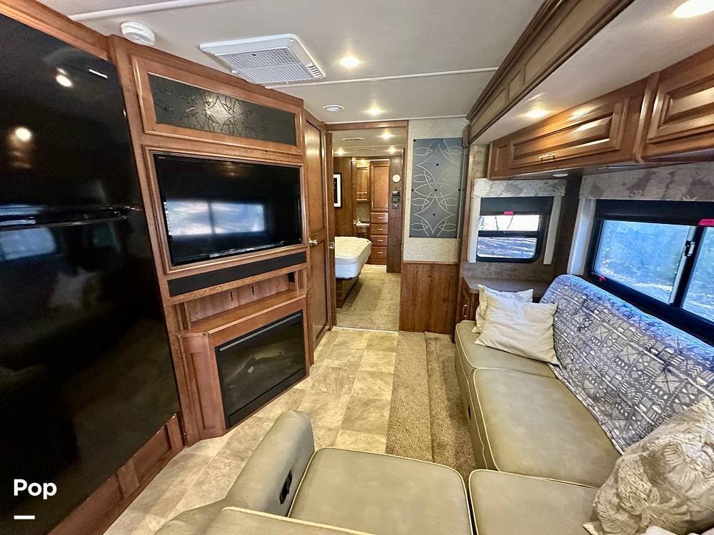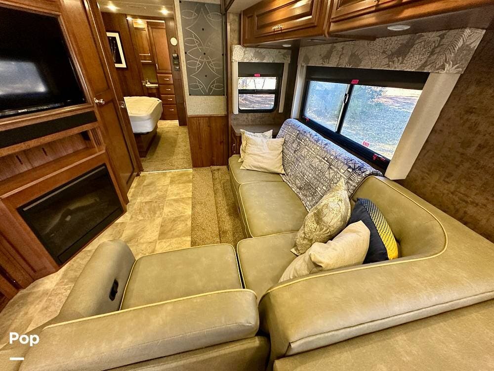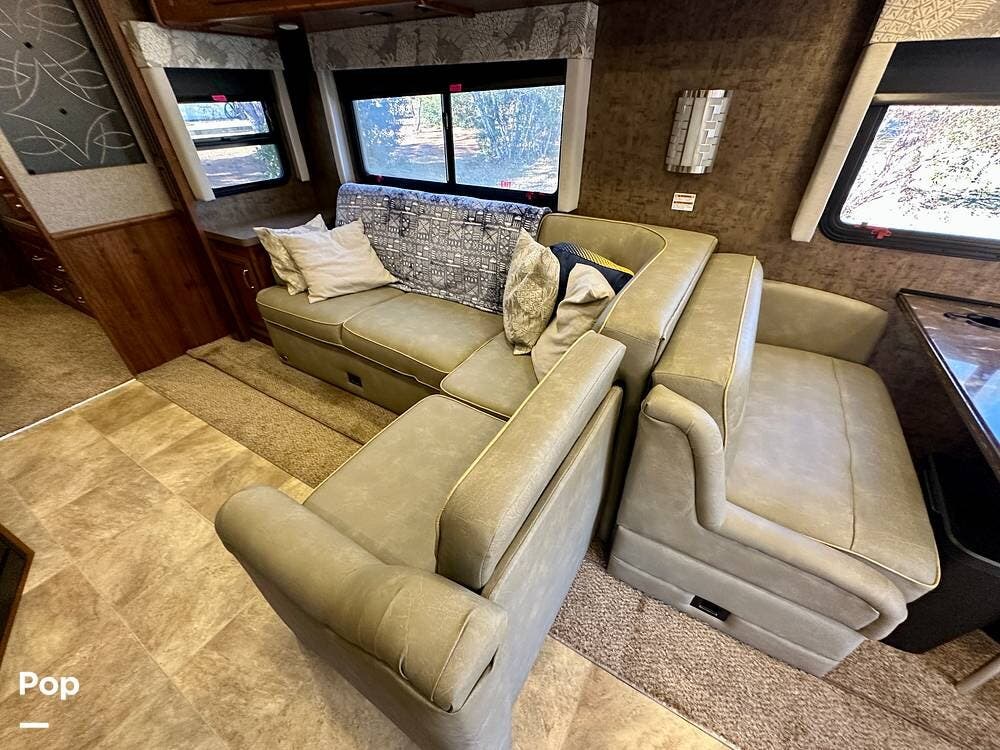 Step inside and you'll find an inviting interior with upgraded leather seating that feels both luxurious and lived-in, a residential refrigerator and freezer for extended trips, and a spacious layout that makes every mile feel like home.
