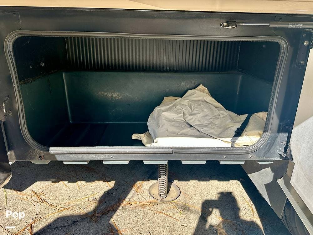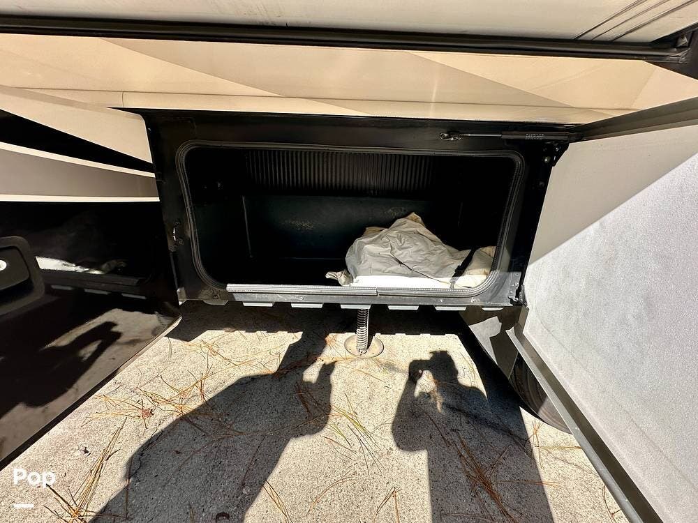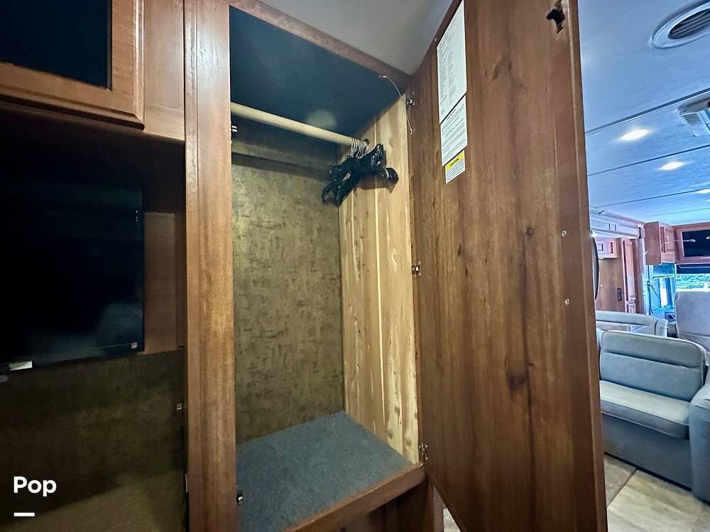 Outside, an electric awning and outdoor TV create a second living space under the open sky, ideal for relaxing evenings or watching the big game at the campsite. The generator keeps you powered up, whether you're off-grid or parked by the lake.