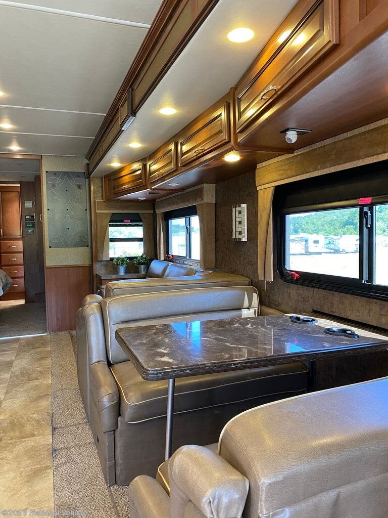 Step inside and take a look back at all of the convenient features that would make any journey enjoyable. The kitchen area features everything you need to prepare great meals on the go including a sink, a three burner gas range with microwave/convection oven, gas oven and a refrigerator/freezer. There is also plenty of storage for all of your dry and canned goods. Have a seat at the comfortable dinette, where you can enjoy meals with your family.