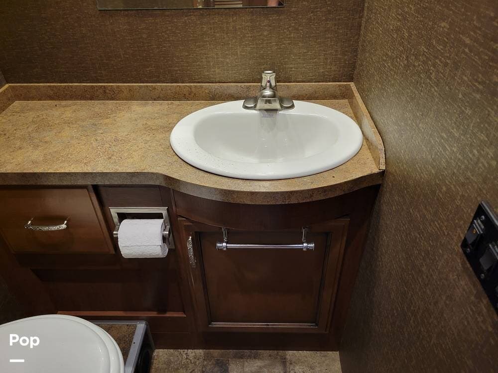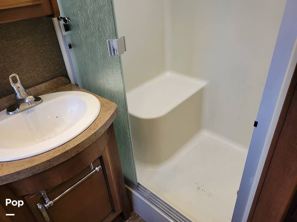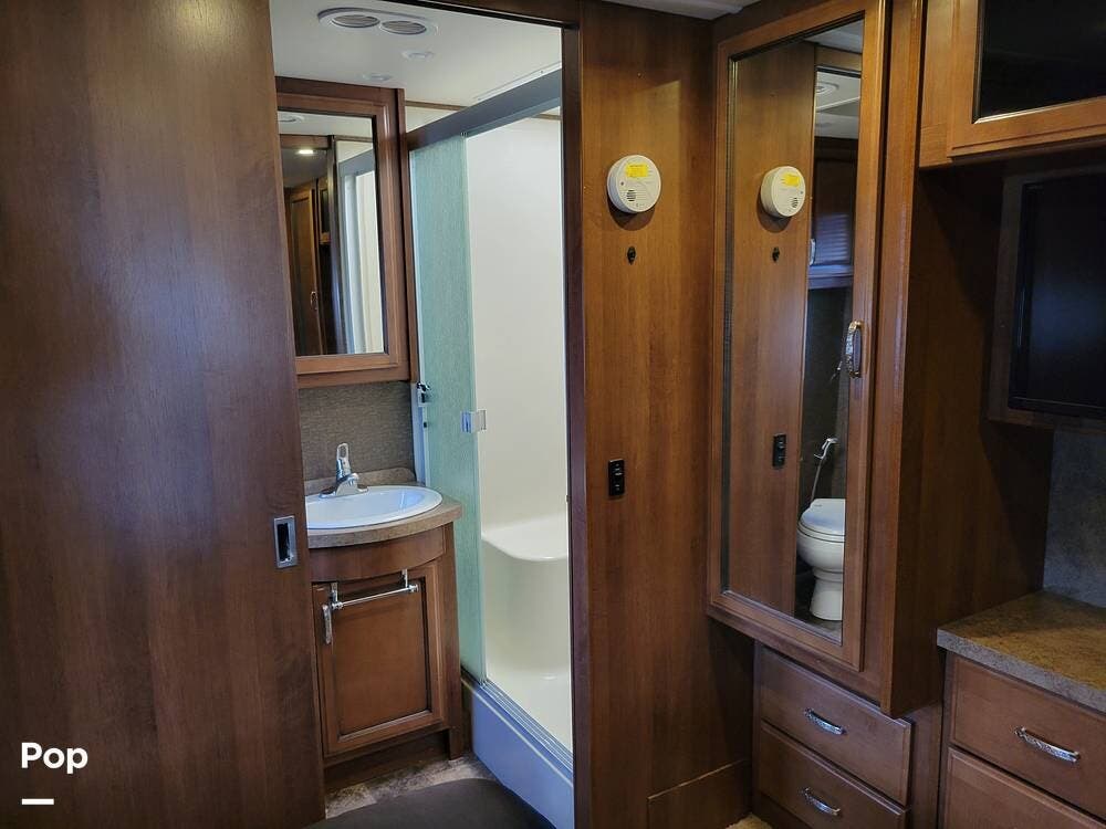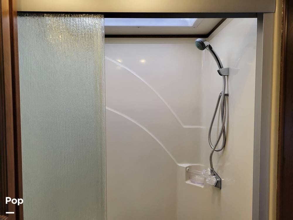 This RV also features a bath and a half, with the 1/2 bath located just past the living area, while the roomy and luxurious full bath can be found through the bedroom suite at the rear of the coach. Both baths include all the expected amenities.