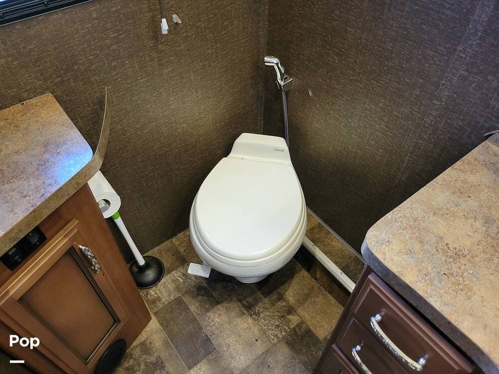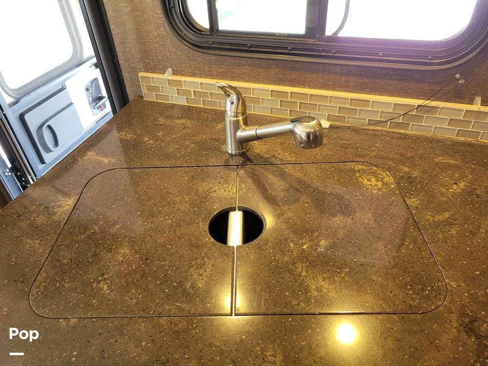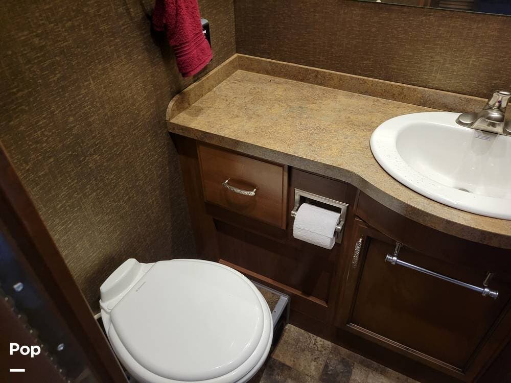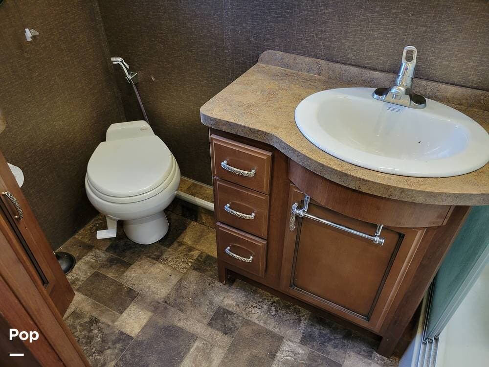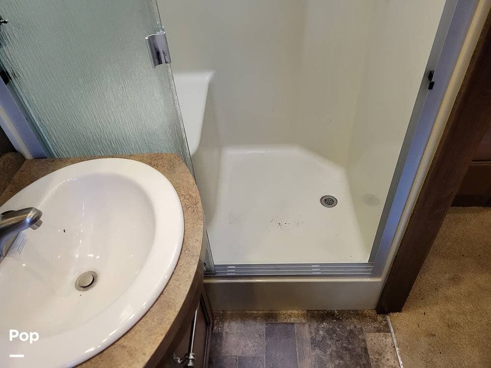 This RV also features a bath and a half, with the 1/2 bath located just past the living area, while the roomy and luxurious full bath can be found through the bedroom suite at the rear of the coach. Both baths include all the expected amenities.