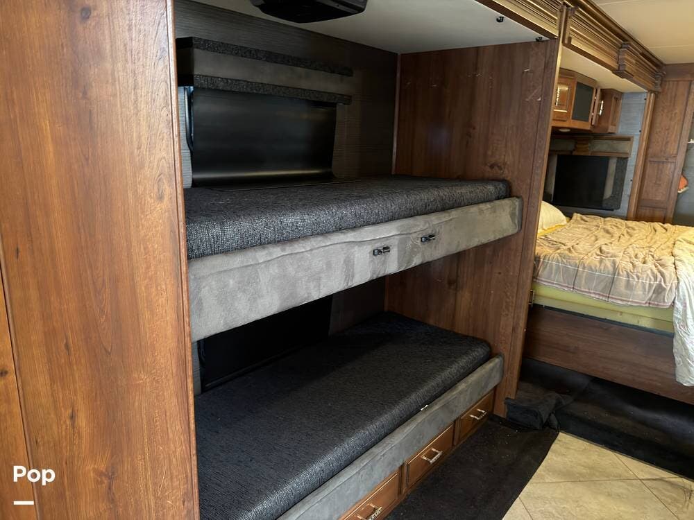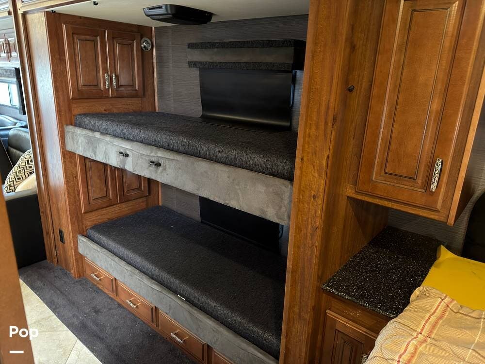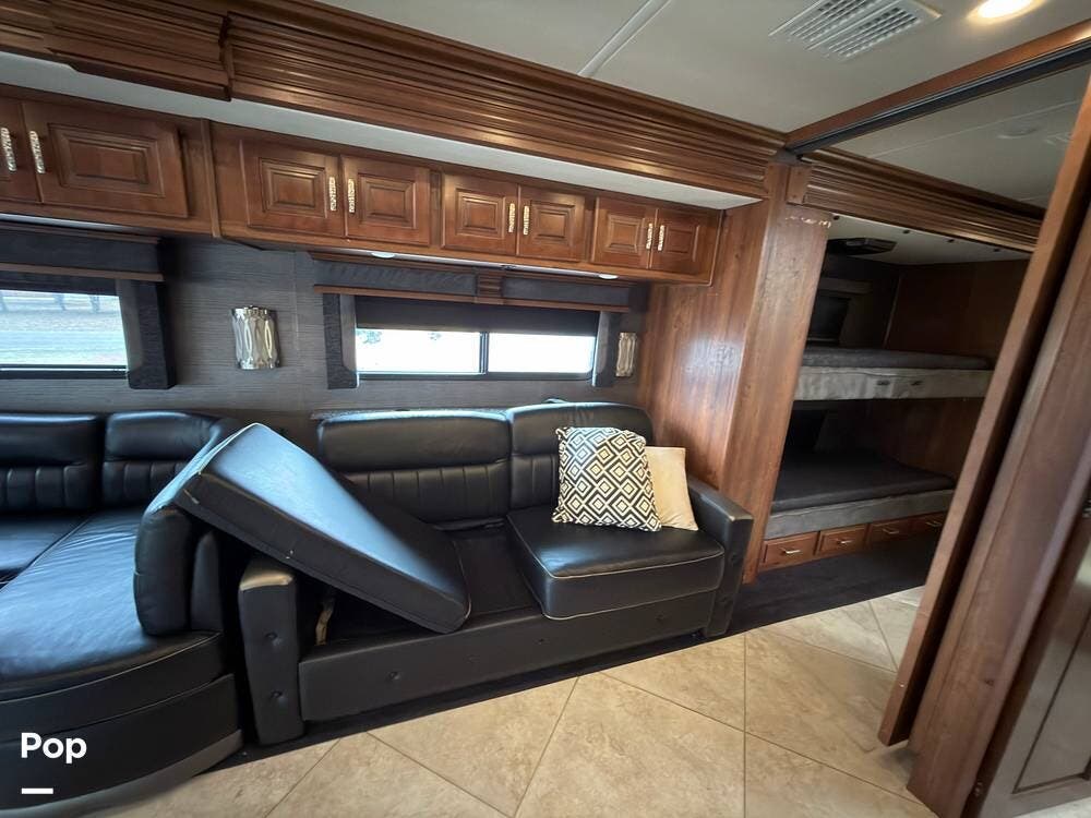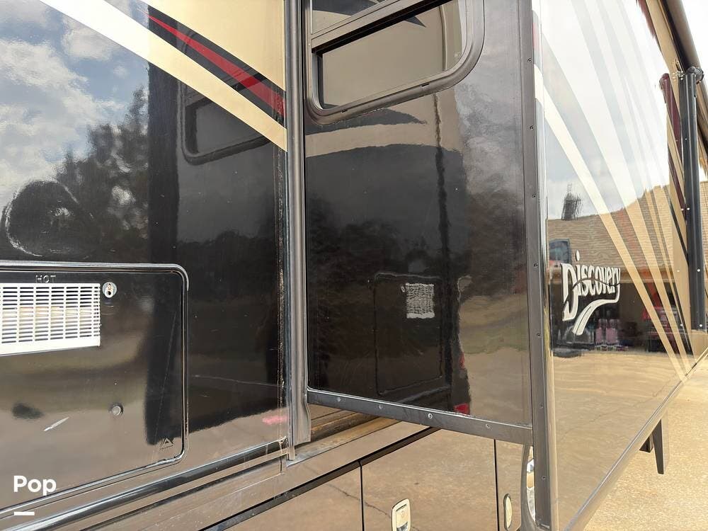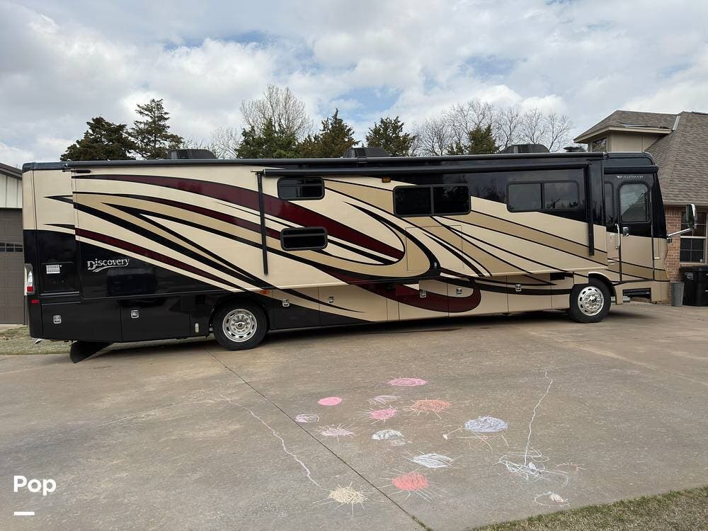 This 2014 Discovery 40G, located in Blanchard, OK, features a spacious layout with bunk beds, a King suite, residential amenities, and enough space for weeks on the road!
