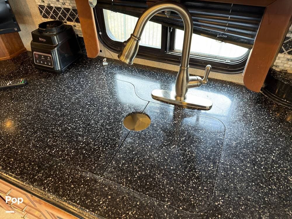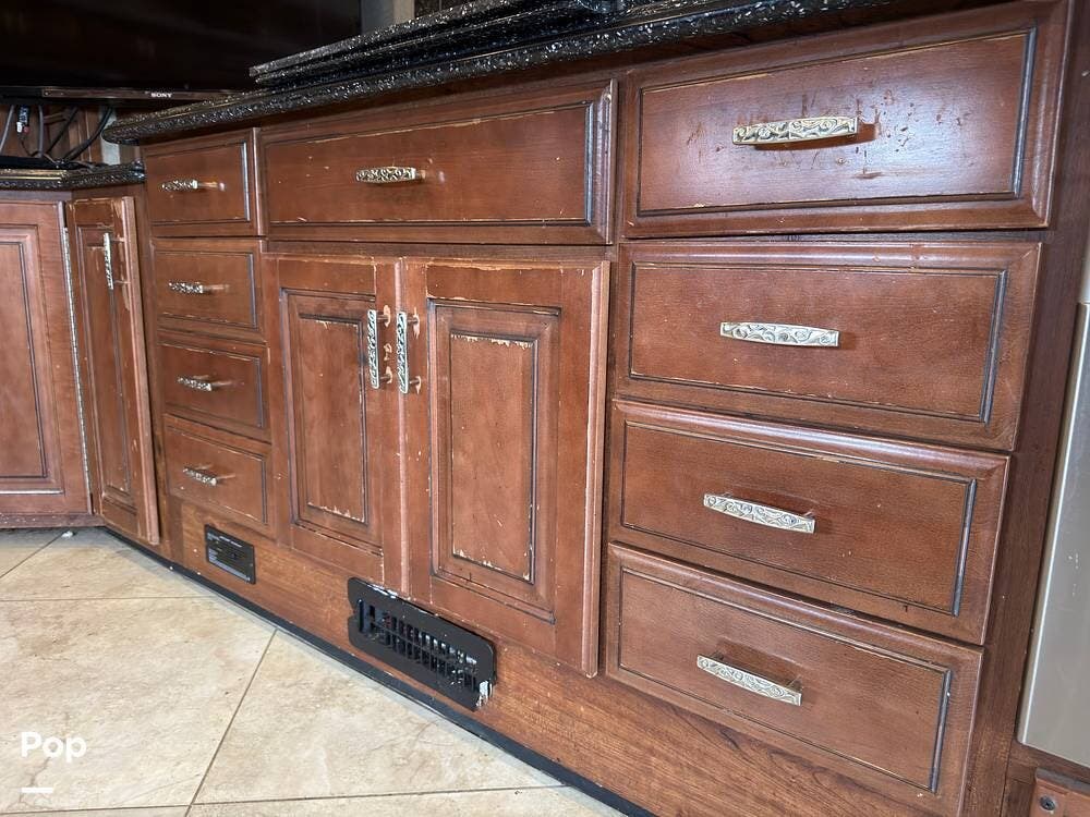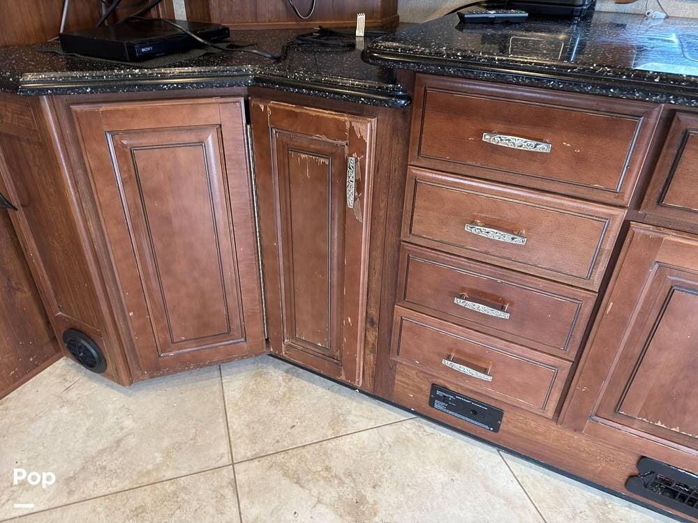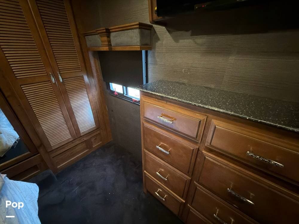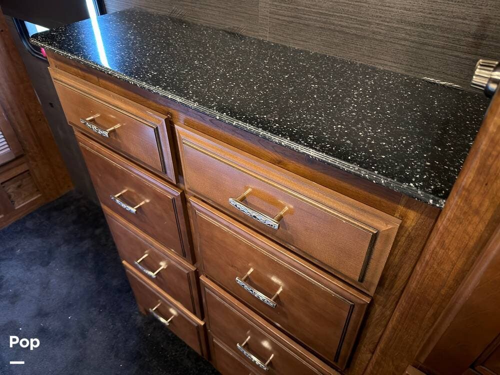 This 2014 Discovery 40G, located in Blanchard, OK, features a spacious layout with bunk beds, a King suite, residential amenities, and enough space for weeks on the road!