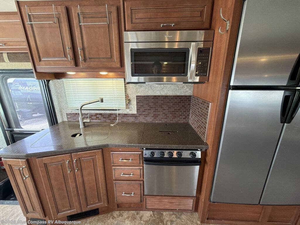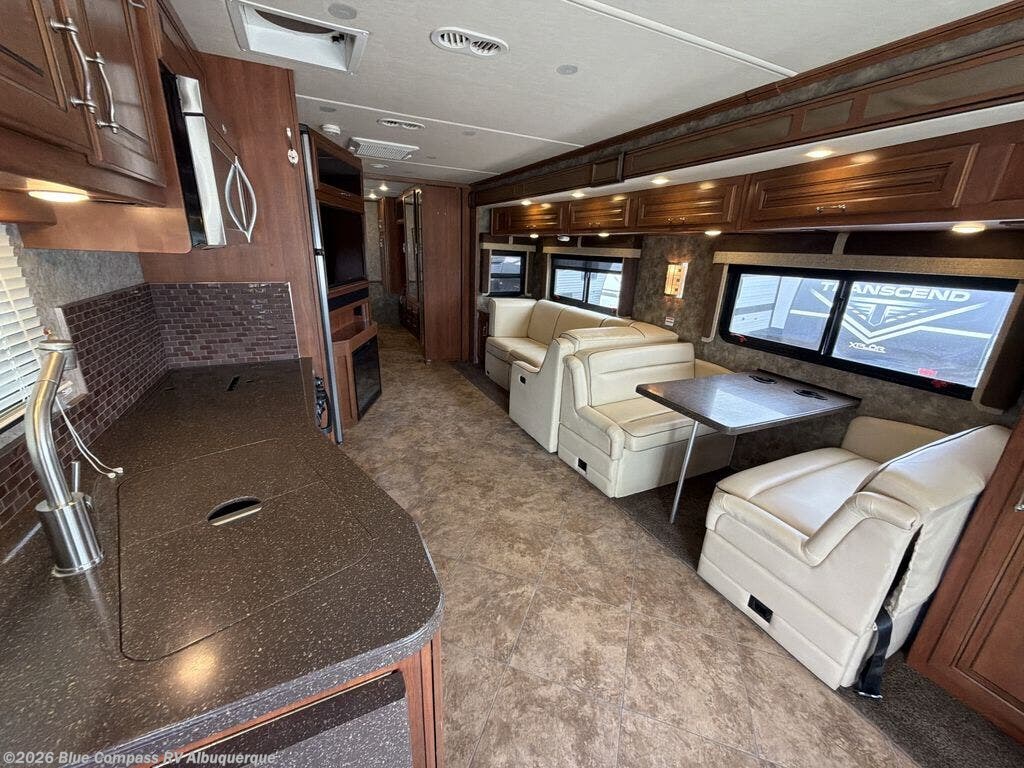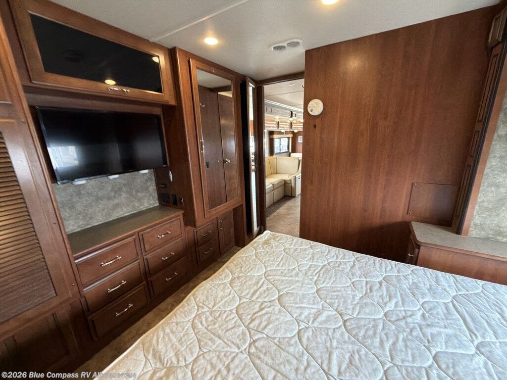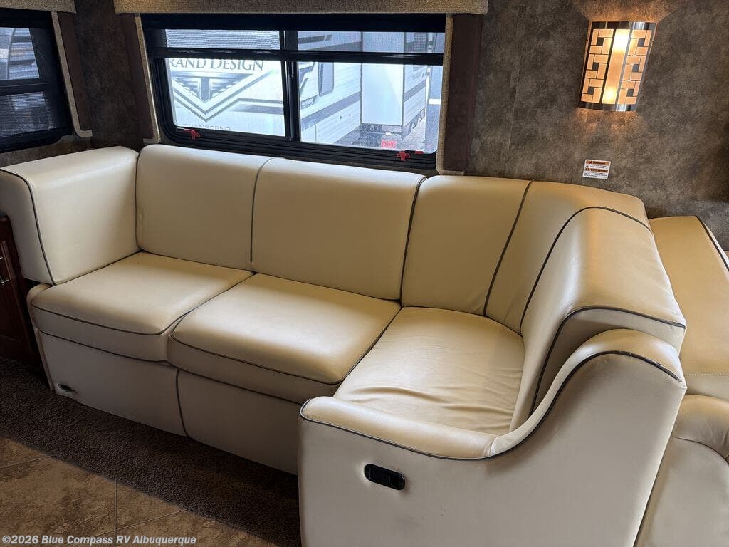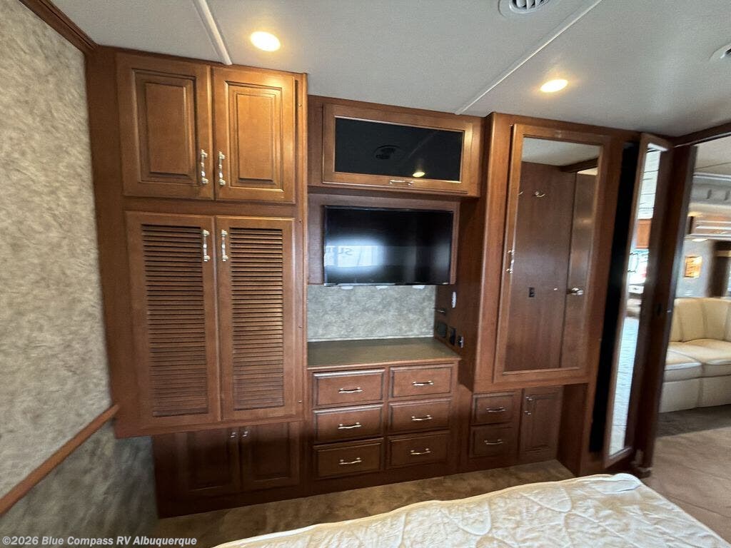 This motor home is not lacking for storage space with all of the overhead cabinets. You can choose many options to make the motor home more of your own, such as a front 32" LED tv, exterior entertainment center, three burner range with oven, washer & dryer, electric fireplace, facing dinette, free-standing dinette with credenza, king bed, queen bed with air mattress and much more!