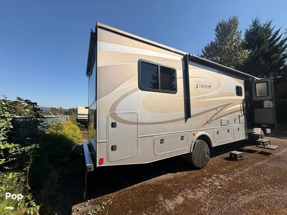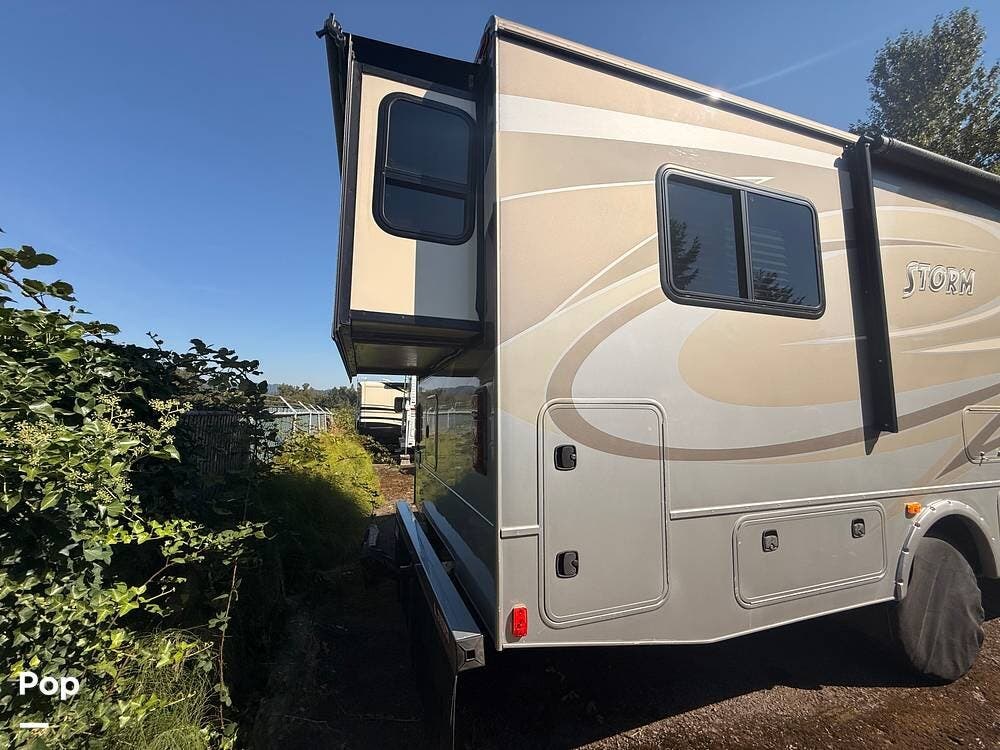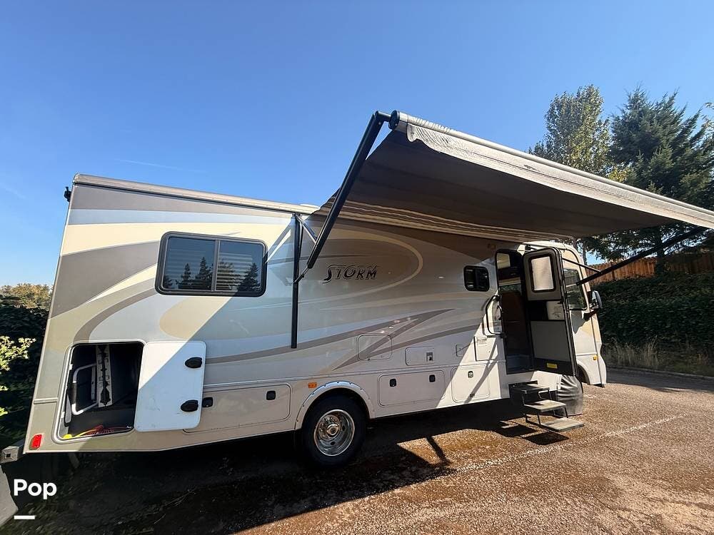 This 2014 Storm 28F is a 28-foot Class A motorhome with a Triton V10 engine, automatic transmission, and approx. 20,000 miles. It features 2 slideouts, 1 awning, and three recently new batteries.