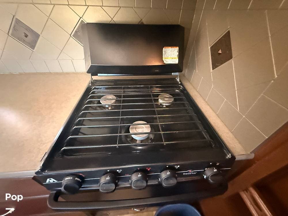 Inside, you'll find a full kitchen with a stove, oven, microwave, hood fan, fridge/freezer, double sink, dinette, pantry, and plenty of cabinet space.