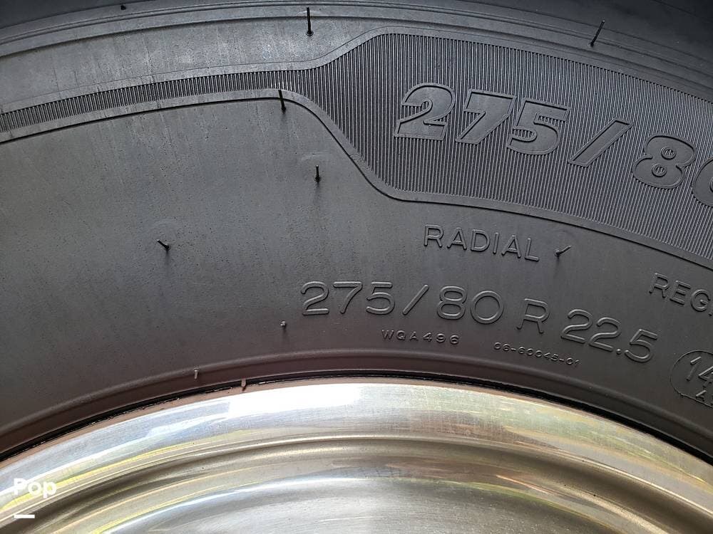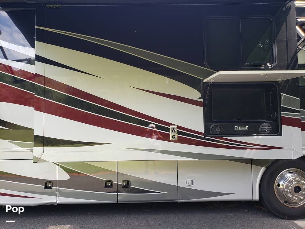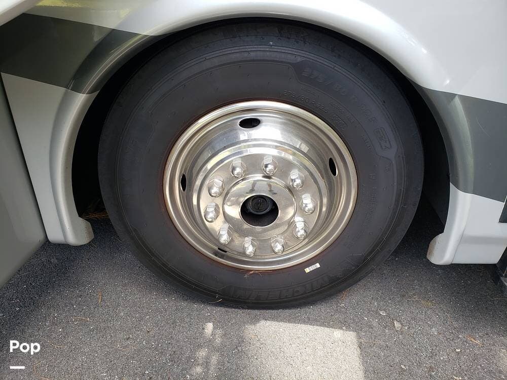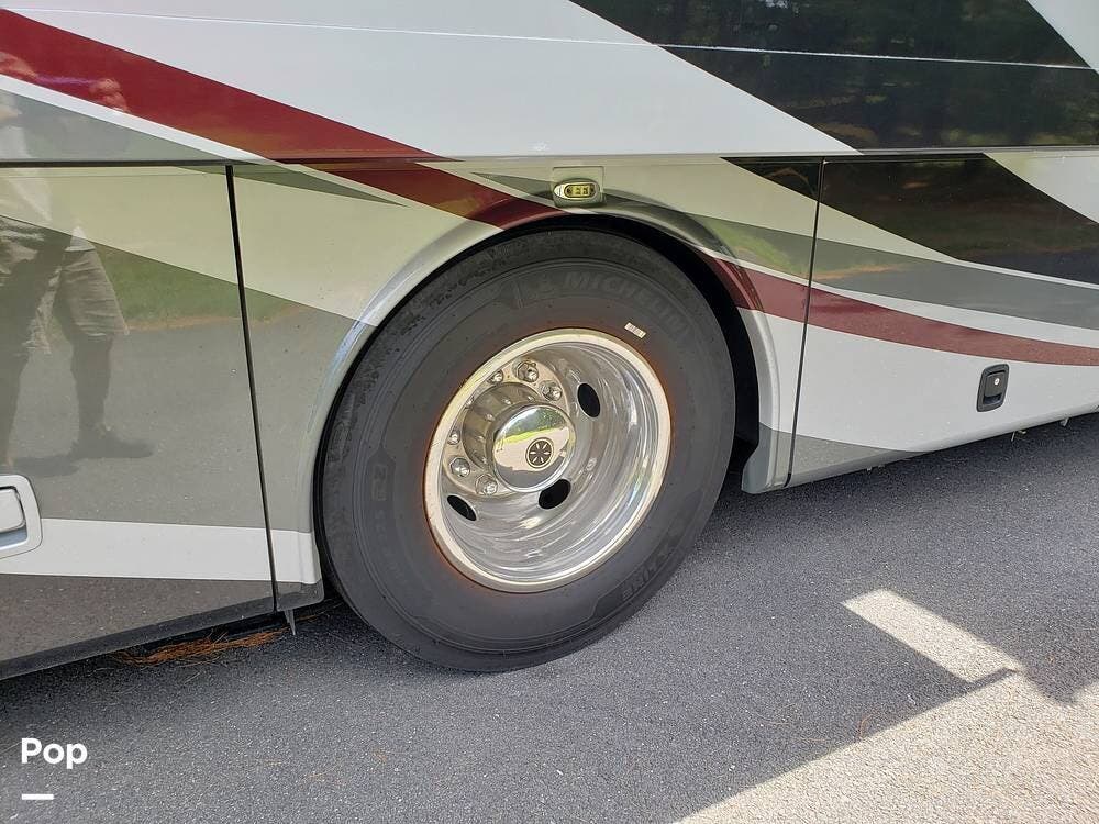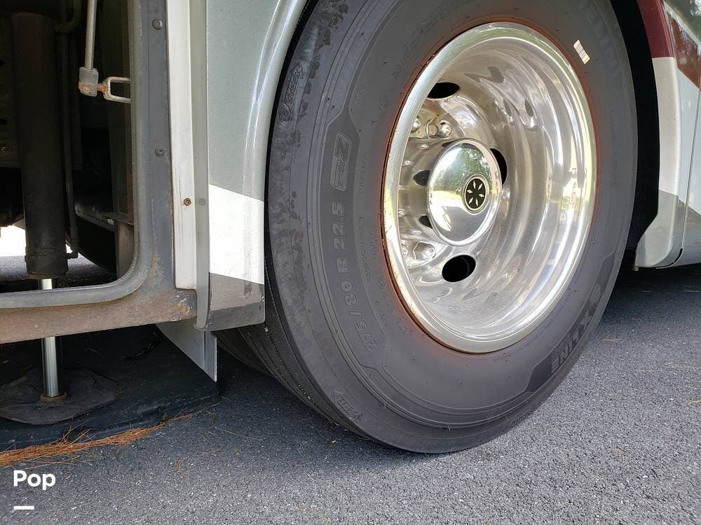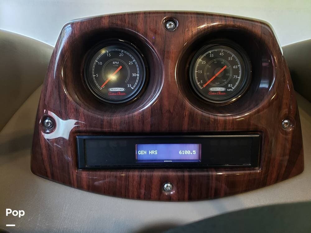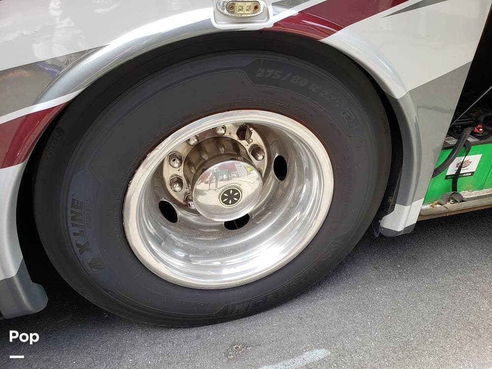 This Berkshire sits on a raised rail XC-Series Freightliner chassis and includes an 8.0kW Onan quiet diesel generator with slide-out, tinted dual pane glass, ceramic tile flooring forward of the bedroom, aluminum wheels, and a 10,000 lb. hitch.