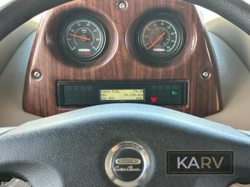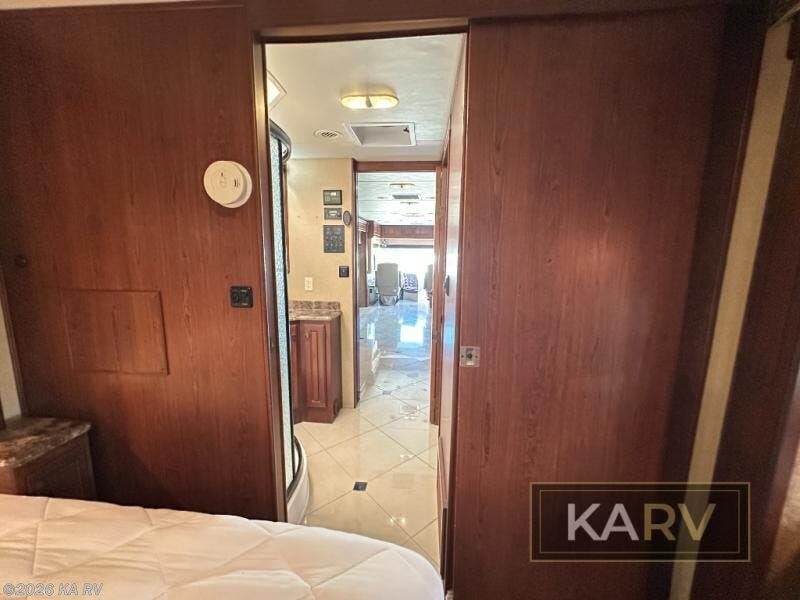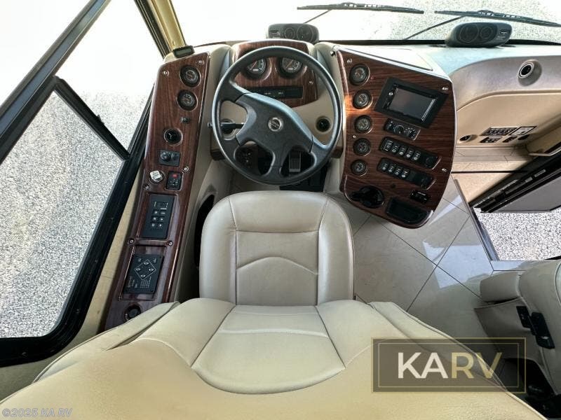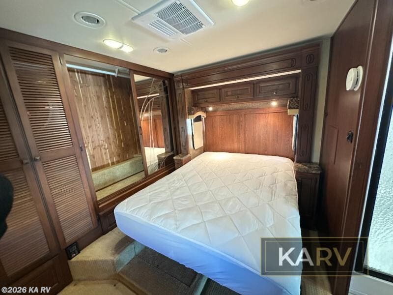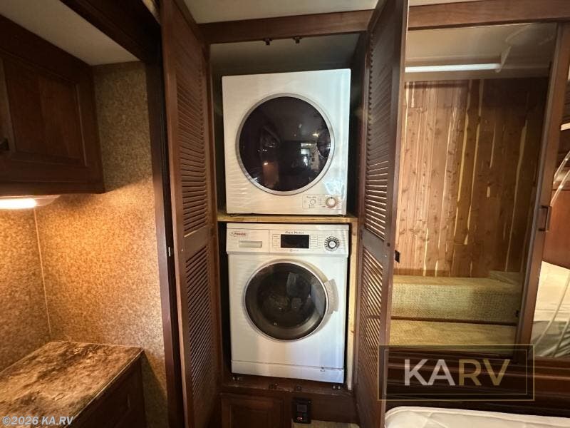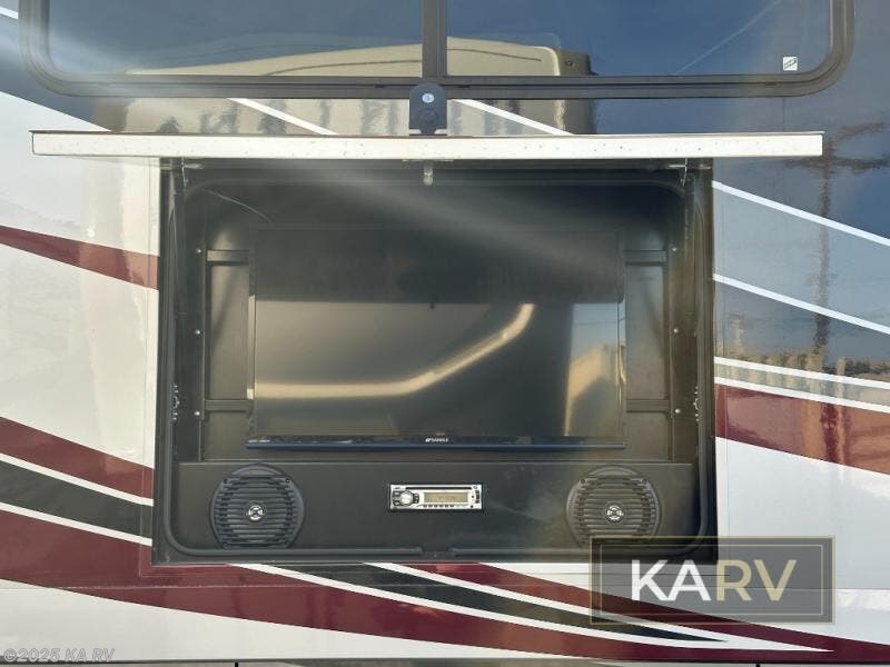 There are plenty of overhead cabinets throughout the motor home as well as some options, such as, a free-standing dinette, residential refrigerator, fireplace, washer and dryer, and an exterior entertainment center.