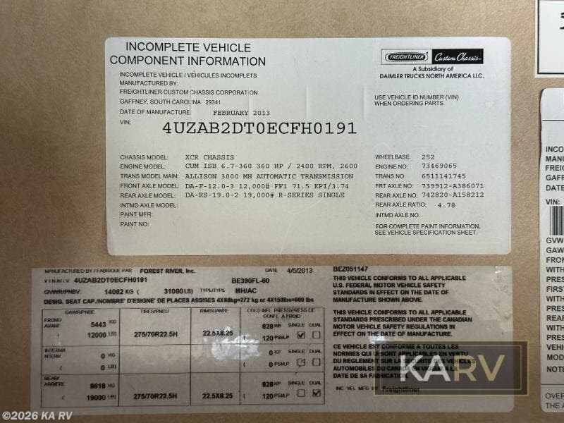 Request More Info on this 2014 Forest River Berkshire 390FL Offered for sale by KA RV