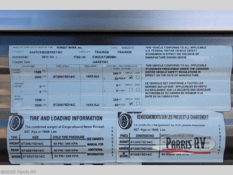 Request More Info on this 2014 Forest River Cherokee Grey Wolf 26DBH Offered for sale by Parris RV