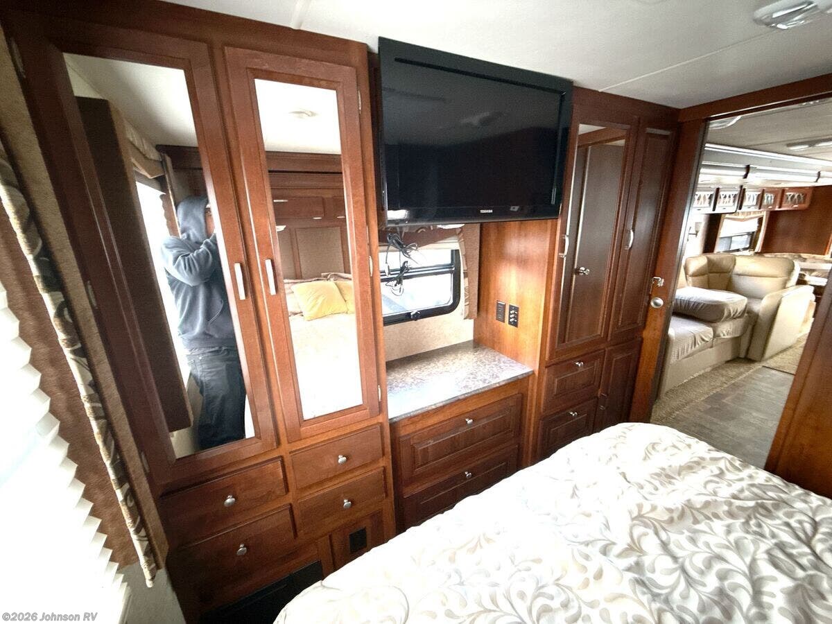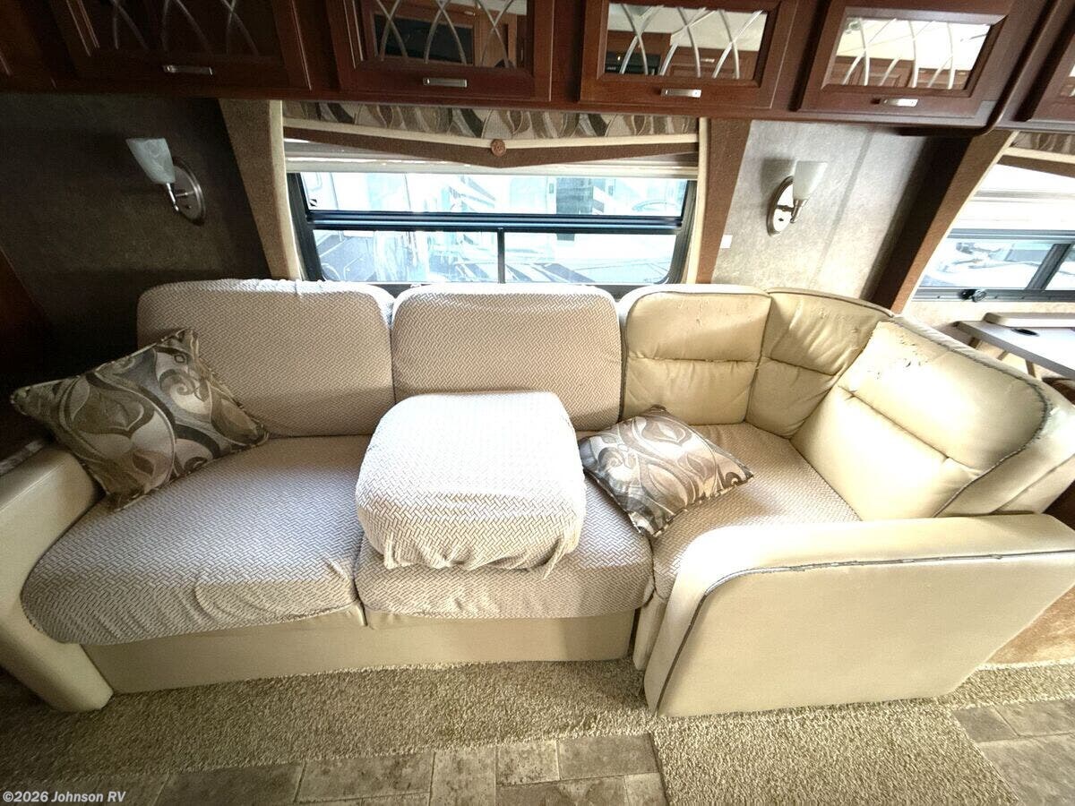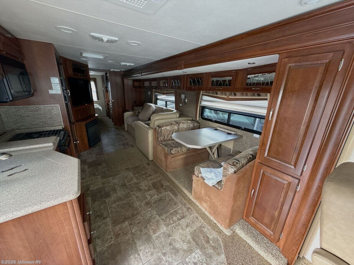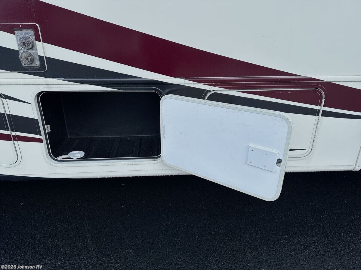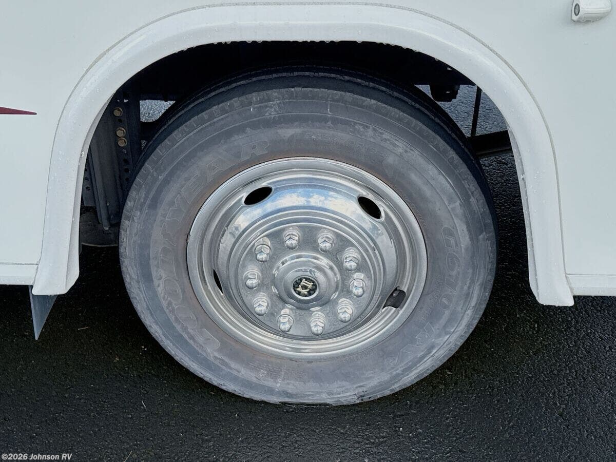 Features Include: Ford V10 Gas Engine, 80-Gal Fuel Tank, Fog Lights, Mud Flaps, 1-Piece Windshield, Soft-Touch Cab Seats, Dash Fans, AM FM CD Player, Patio Awning, Electric Entry Step, LED Accent Lights, Day Night Shades, Entertainment Center, Overhead Cabinets, Dining, Dream Dinette, Refrigerator, Cooktop Glass Cover, Gas Oven, Systems Center, Automatic Leveling, 32-inch TV Sleeping, King Bed 72x74, Overbed Storage, Reading Lights, Wardrobe, Bunk Beds (vbm), Stainless Steel Sink, Linen Storage, Fiberglass Shower, 24-Gal LP Tank, Auxiliary Battery, 50-Amp Service, 13.5k AC 2nd AC Prep, 35k Furnace, 6-Gal DSI Hot Water, Black Tank Flush, Slide Out Awnings, Rotocast Storage Bay