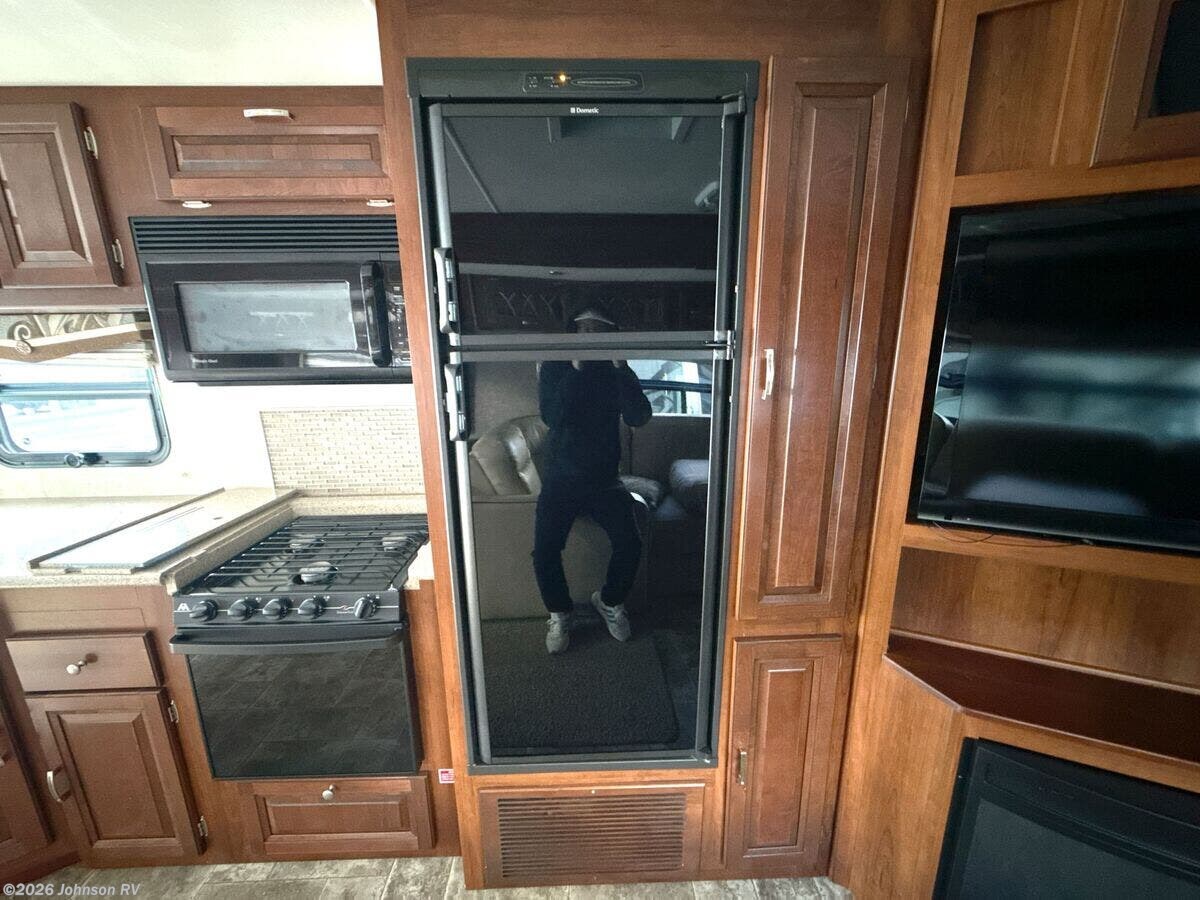 Explore the expansive offerings of the 2014 Forest River Georgetown 335DS, a Class A RV designed for ultimate comfort and convenience on the road. Powered by the reliable Ford V10 gas engine and built on a sturdy Ford motorhome chassis, this RV is engineered for smooth travels. Its exterior embodies practicality, featuring fog lights, mud flaps, and a 5000-pound hitch for additional towing capabilities. **Cab Features:** - 1-Piece Windshield - Power Windshield Shade - Soft Touch Cab Seats - Dash Fans - AM/FM CD Player - Side and Rear Cameras - Remote Heated Side-Mirrors **Comfortable Living Spaces:** - Patio Awning for outdoor enjoyment - Electric Entry Step - Flush Floor Construction for seamless movement - Accent Lighting - Day/Night Shades and Designer Window Treatments - Entertainment Center to keep you entertained - Fireplace Spaceheater (vbm) - Sofa Sleeper (vbm) - Overhead Cabinets for extra storage - Full Extension Drawer Guides **Kitchen & Dining Amenities:** - Dream Dinette for meals and gatherings - Slide Out Pantry Shelves (vbm) - Solid Surface Countertops - Decorative Backsplash - Undermount Stainless Steel Sink with Pull-out Sprayer Faucet - Flush Solid Surface Sink Covers - Refrigerator, Cooktop with Glass Cover, and Gas Oven - 30-inch Microwave **Electronics & Environment Control:** - Systems Control Center for managing different functionalities - LP CO Smoke Detectors - Automatic Leveling for stability - 32-inch TV for entertainment **Sleeping Accommodations:** - Bedroom with Pocket Door for privacy - King Bed (72x74) with overbed storage and reading lights - TV Cabinet TV Prep - Wardrobe - Bunk Beds (vbm) with Bunkhouse DVD (vbm) **Bathroom Comforts:** - Medicine Cabinet with Mirror - Stainless Steel Sink - Linen Storage - Fiberglass Shower - Power Vent Fan for ventilation **Mechanical Features:** - Battery Disconnect Switch - Auxiliary Battery - 50-Amp Service with 65-Amp Converter Charger - 13.5k AC with 2nd AC Prep - 35k Furnace to keep warm - Enclosed Holding Tanks - 6-Gal DSI Hot Water Heater - Full Coach Water Filtration - Black Tank Flush - Outdoor Shower for convenience **Coach Build Highlights:** - Seamless Fiberglass Roof - Automatic Leveling Jacks - Slide Out Awnings for added shade - Rear Storage Compartment - Rotocast Storage Bay for durable storage - Slam Latch Cargo Doors for easy access This RV offers a zero-mileage odometer, suggesting it's either freshly serviced or in impeccable condition. Perfectly designed for those who appreciate luxurious travel, the 2014 Georgetown 335DS ensures a home-like experience with contemporary amenities and robust mechanical features. Whether you are on a long road trip or enjoying a weekend getaway, this RV is equipped to make every journey memorable. ??