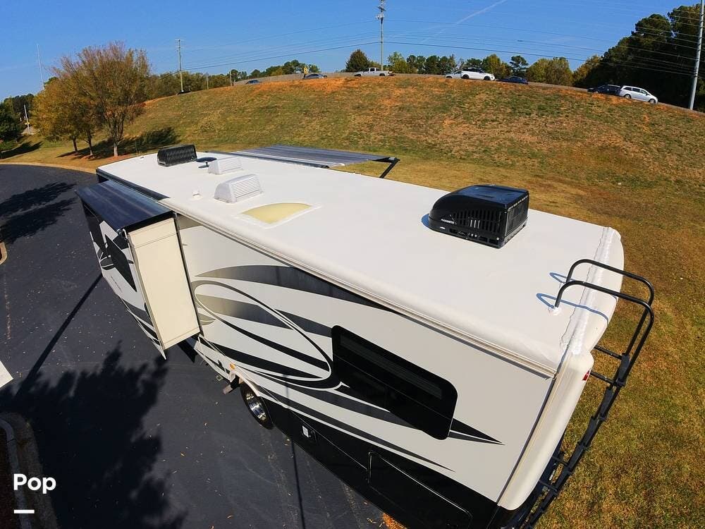 Outside the large power patio awning allows you to extend the fun at the campsite and makes this RV a great option for tailgating. All of the RV systems are clearly marked and easily accessible around the RV.