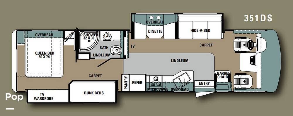 The flooring has been replaced with laminate wood flooring - throughout the RV - it makes this unit stand out!