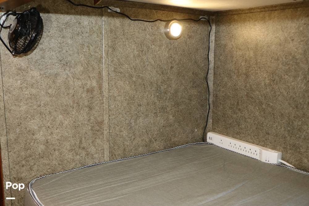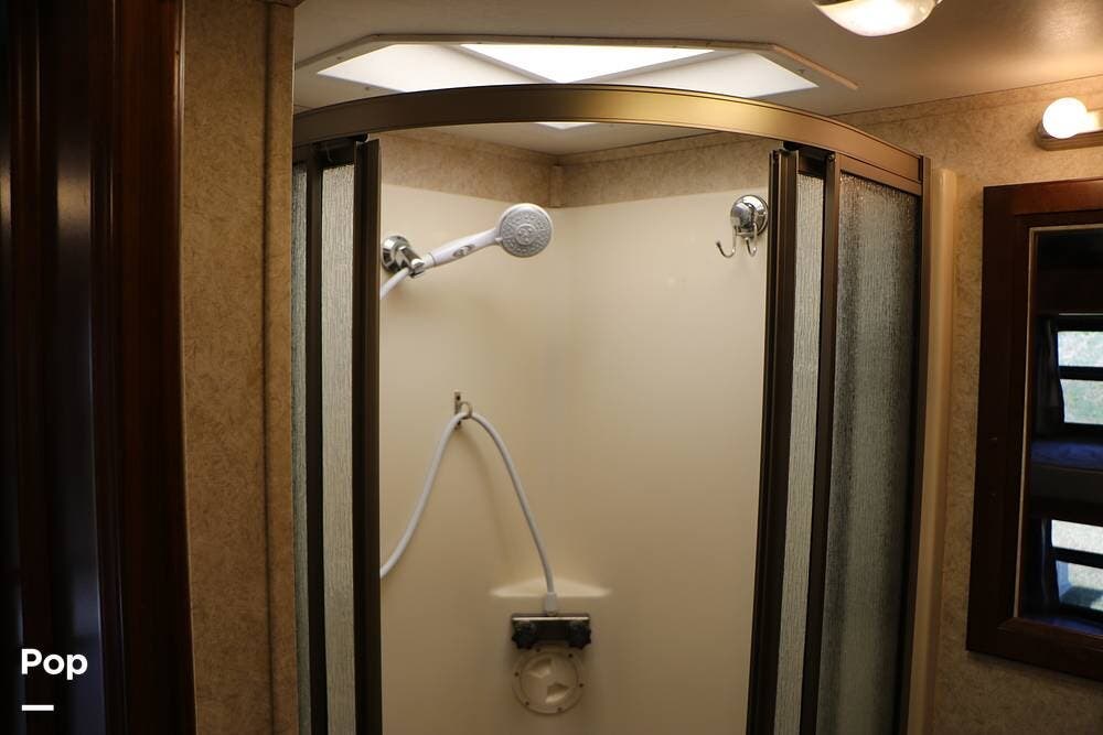 The bunk beds are across from the full bathroom that features a large corner step-in shower with skylight overhead and a sink with medicine cabinet and more storage below the sink - and of course the toilet.