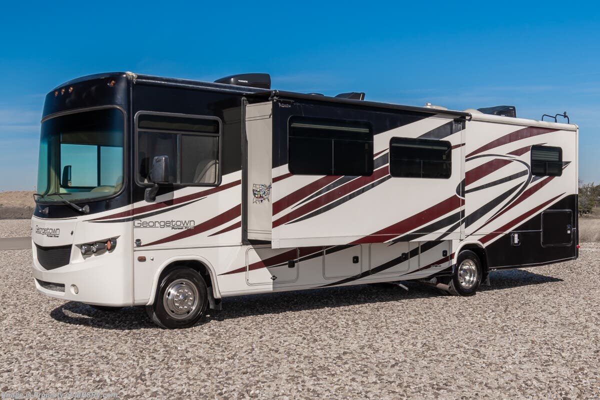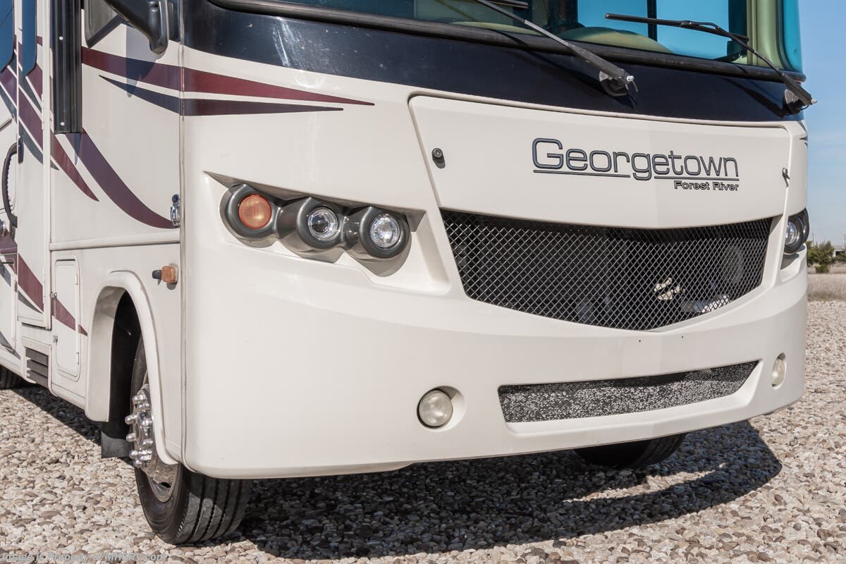 Used Forest River RV for sale – 2014 Forest River Georgetown 351DS is approximately 35’ 0” in length with 52,083 Miles, 2 slides and features LCI hydraulic leveling, 3 camera system, dual A/C's, Onan 5.5KW gas generator, Ford chassis, Ford V10 gas engine, tilt steering wheel, power visor, patio awning, pass through storage, water filtration system, exterior shower, clear paint mask, fiberglass roof, inverter, ladder, 7 foot ceiling, hardwood cabinets, residential refrigerator with ice maker, 3 burner gas range with oven, overhead loft, bunk beds and much more. For additional details on this unit and our entire inventory including brochures, window sticker, videos, photos, reviews & testimonials as well as additional information about Motor Home Specialist and our manufacturers please visit us at or call 800-335-6054 for our Texas location or 334-288-0331 for our Alabama location. At Motor Home Specialist, we DO NOT charge any prep or orientation fees like you will find at other dealerships. Read Thousands upon Thousands of 5-Star Reviews at and See What They Had to Say About Their Experience at Motor Home Specialist.