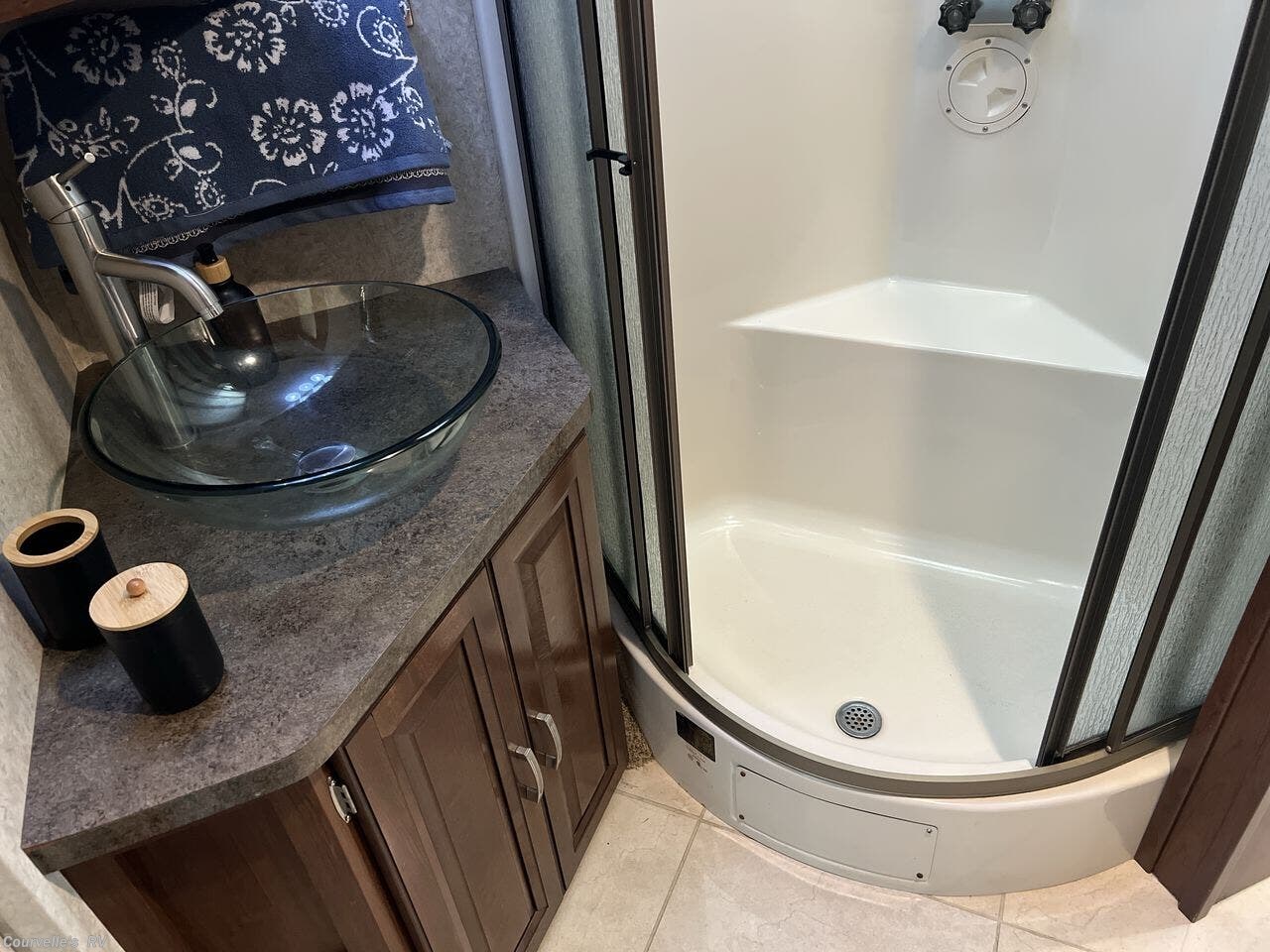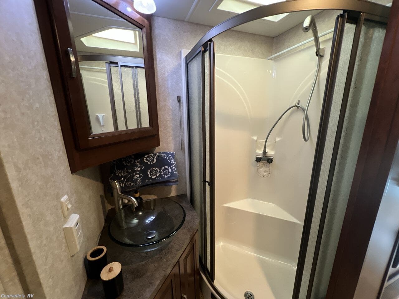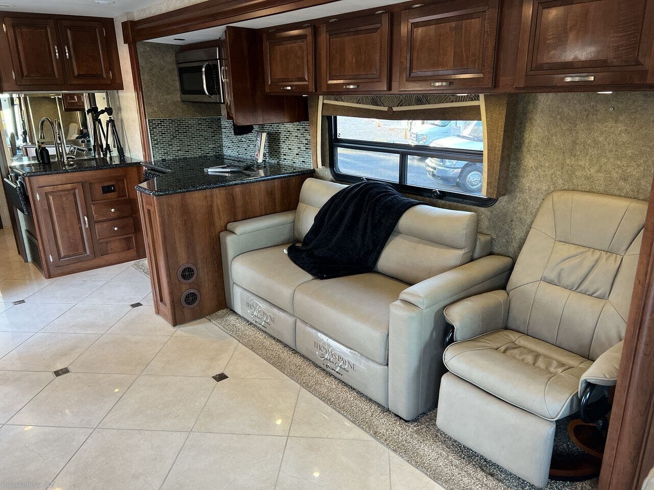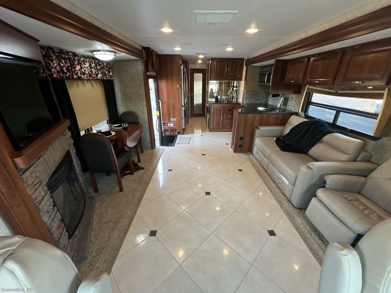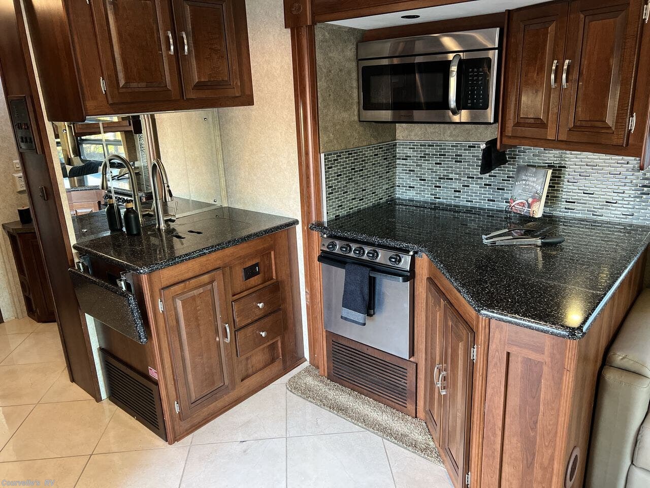 6-Way Power Driver's Seat, Day/Night Shades, Fireplace, Glass Shower Door, Kitchen Sink, Leather Furniture, Medicine Cabinet, Non-Smoking Unit, Pantry, Queen Bed, Recliner(s), Self Contained, Shower, Solid Surface Countertops, Wardrobe(s)