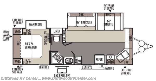 With all of the overhead cabinets throughout the trailer and the exterior storage, bringing all of the necessary items from home isn't a problem. You can even enjoy an optional gas grill outside.