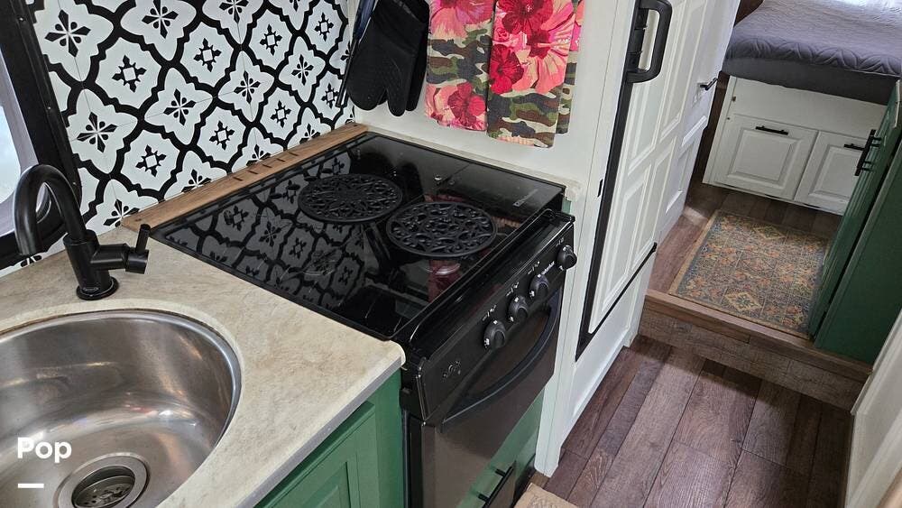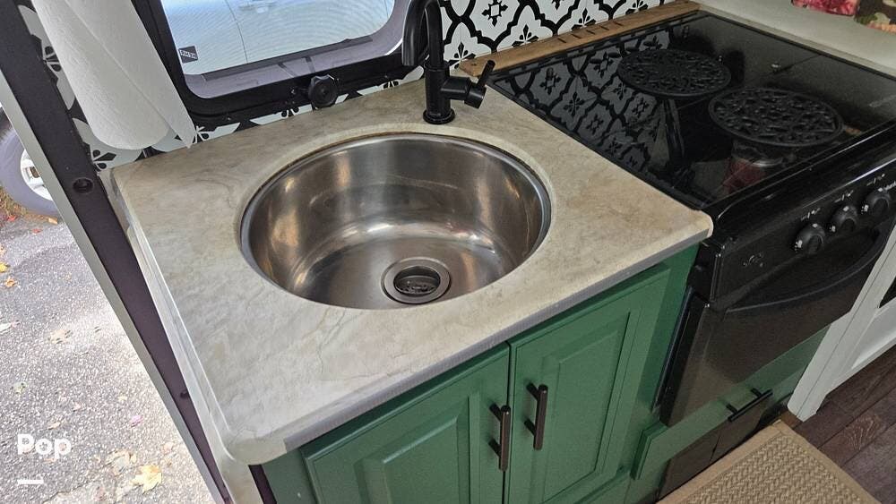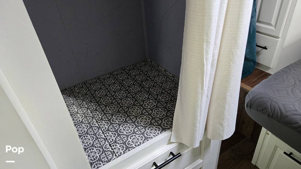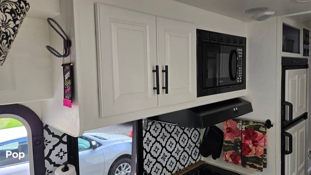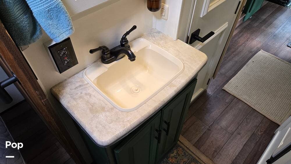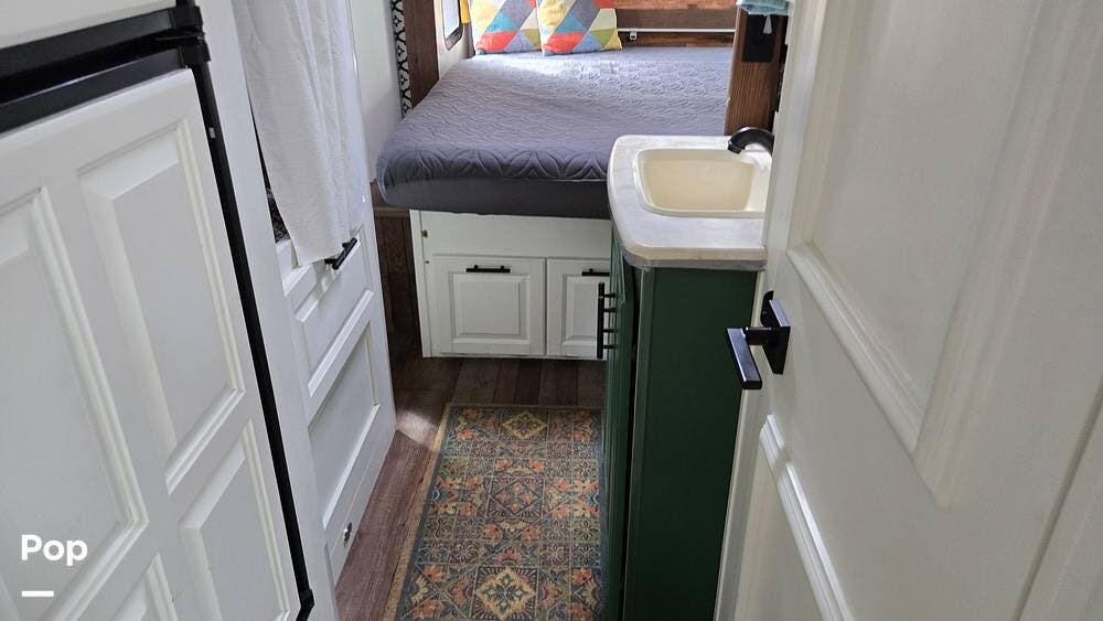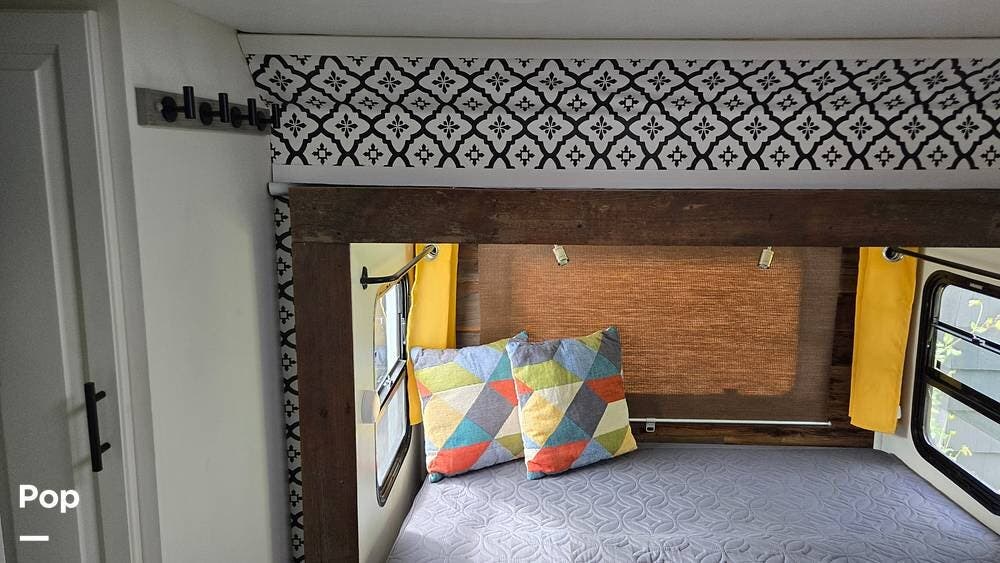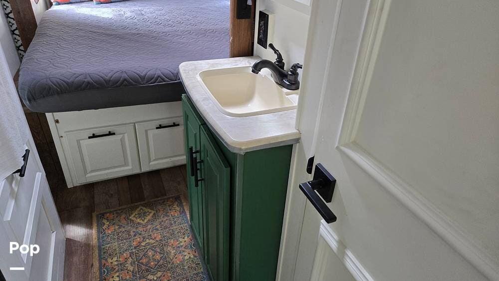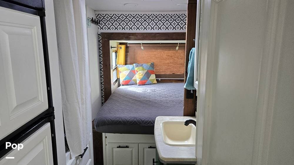 The roof has been resealed, ensuring peace of mind during all-weather travels. The interior of this Solera has undergone a tasteful renovation by its talented owner, blending contemporary aesthetics with comfort. Every detail has been thoughtfully considered, providing a fresh, inviting atmosphere that stands out from standard RV interiors.