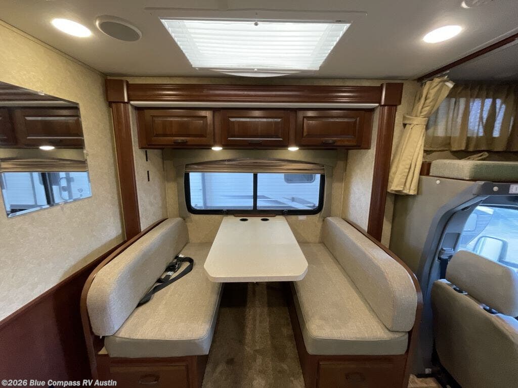 The Solera 24R motor home by Forest River offers a dinette slide and plenty of overhead cabinet storage.