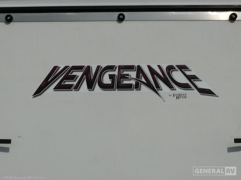 Experience the perfect blend of adventure and comfort with the 2014 Forest River Vengeance 25V. This versatile toy hauler is designed to be your home away from home, offering ample space to sleep up to six people. Whether you're traveling with family or friends, the king bed, full-size bed, and convertible sleeping area ensure everyone rests comfortably. The open floor plan seamlessly integrates the center kitchen, living, and bath areas, making it easy to move around and entertain. The Vengeance 25V is not just about space; it's about convenience. The mid-size refrigerator, powered by both electric and propane, keeps your supplies fresh, while the three-burner cooktop makes meal preparation a breeze. Enjoy meals at the free-standing table or relax on the flip-up sofas. The 21-foot powered retractable awning invites you to extend your living space outdoors, providing shade and shelter. With a generous cargo capacity and a ramp door, this RV is ready to carry all your adventure gear. Visit your nearest General RV dealership to discover more about this fantastic model and start planning your next journey.