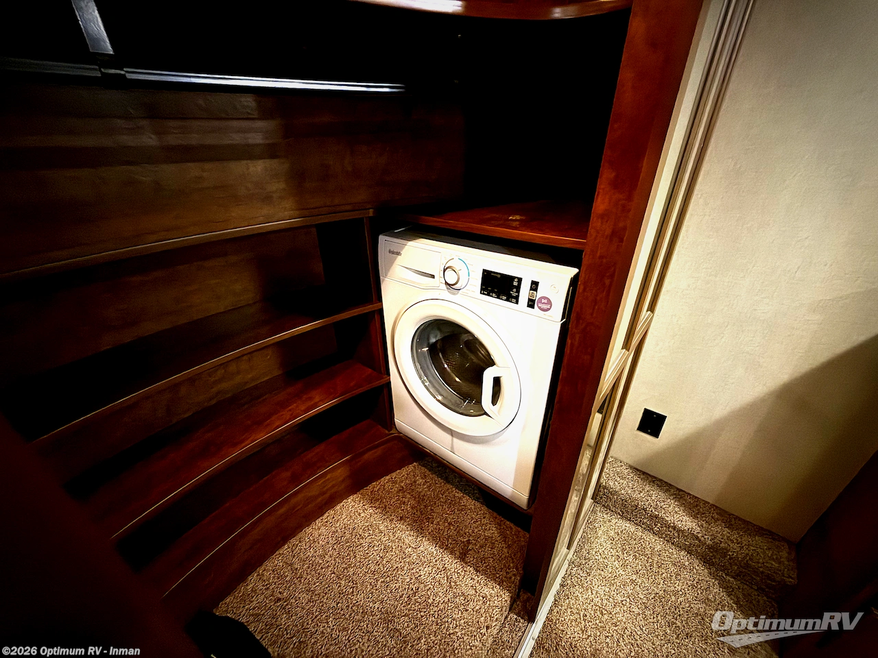 The front master suite features a slide-out queen bed with optional king. There is a pull-out ottoman at the foot of the bed, a dresser with optional HD TV above, and a large closet with shirt storage on one side and washer dryer prep opposite, and so much more!