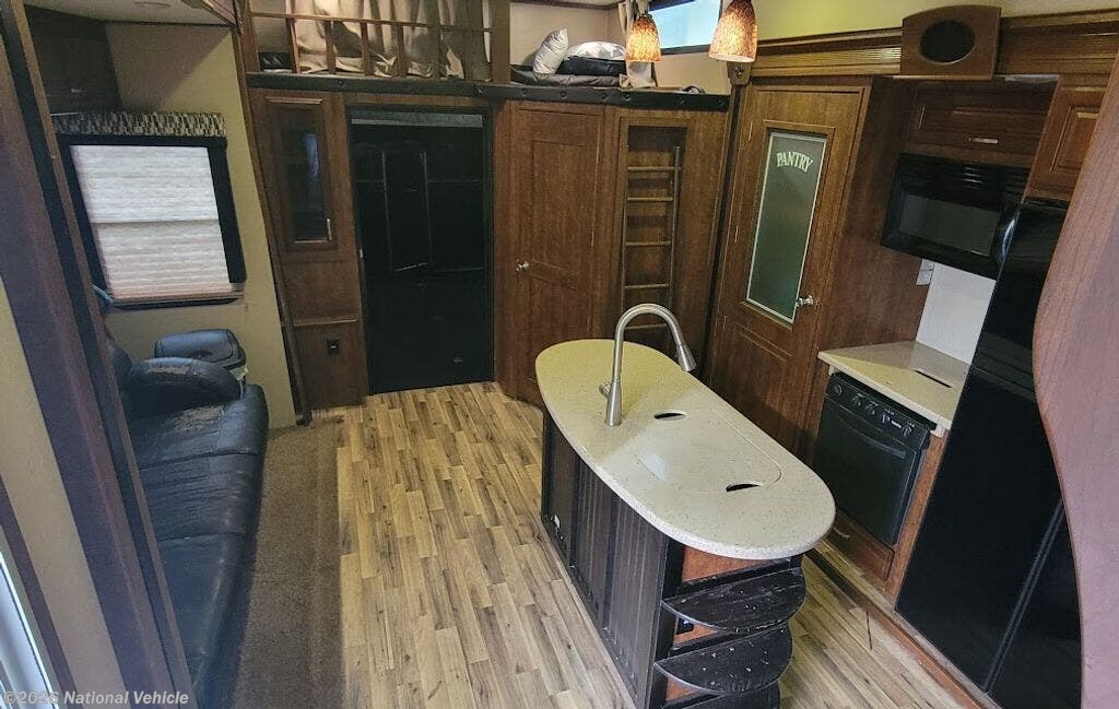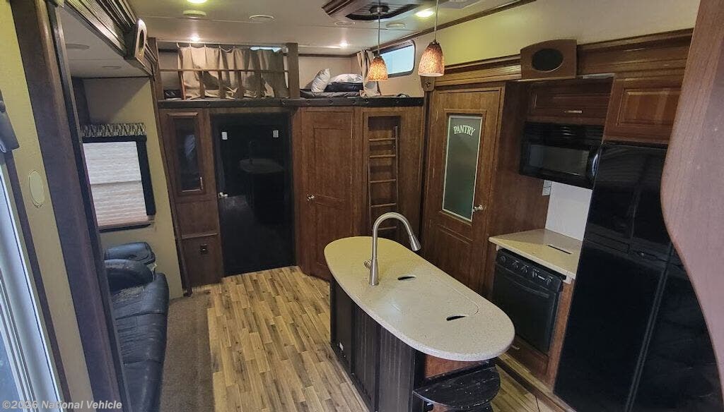 Inside, the spacious garage area provides plenty of room for ATVs, motorcycles, and gear, with easy access and secure tie-downs. When it?s time to relax, the rear living area features comfortable seating, large windows, and a well-appointed entertainment space. The kitchen offers solid-surface countertops, full-size appliances, and abundant storage, making meal prep and cleanup simple.