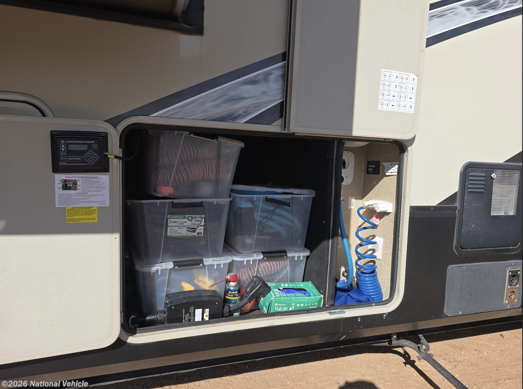 Set-up is quick and effortless thanks to the 6-point automatic self-leveling system, while the single-piece aluminum fold-up entry step with handle provides sturdy, easy access. The coach is clean, well cared for, and shows pride of ownership throughout.