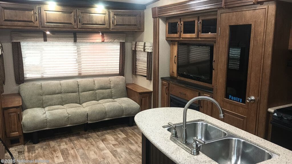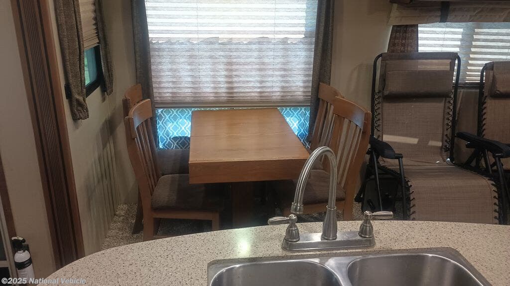 The rear living layout features large windows and upgraded lighting for an open, bright feel. The rear sofa bed has been replaced for improved comfort and functionality. The living area includes two TVs (main and bedroom) and an electric fireplace, perfect for cozy evenings. There?s also a freestanding dinette, and plenty of storage throughout.
