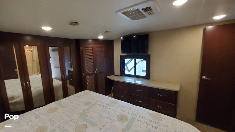 This RV sleeps ten, and has two bathrooms, and exterior fuel pump for your toys, and even a generator making it perfect for family adventures.