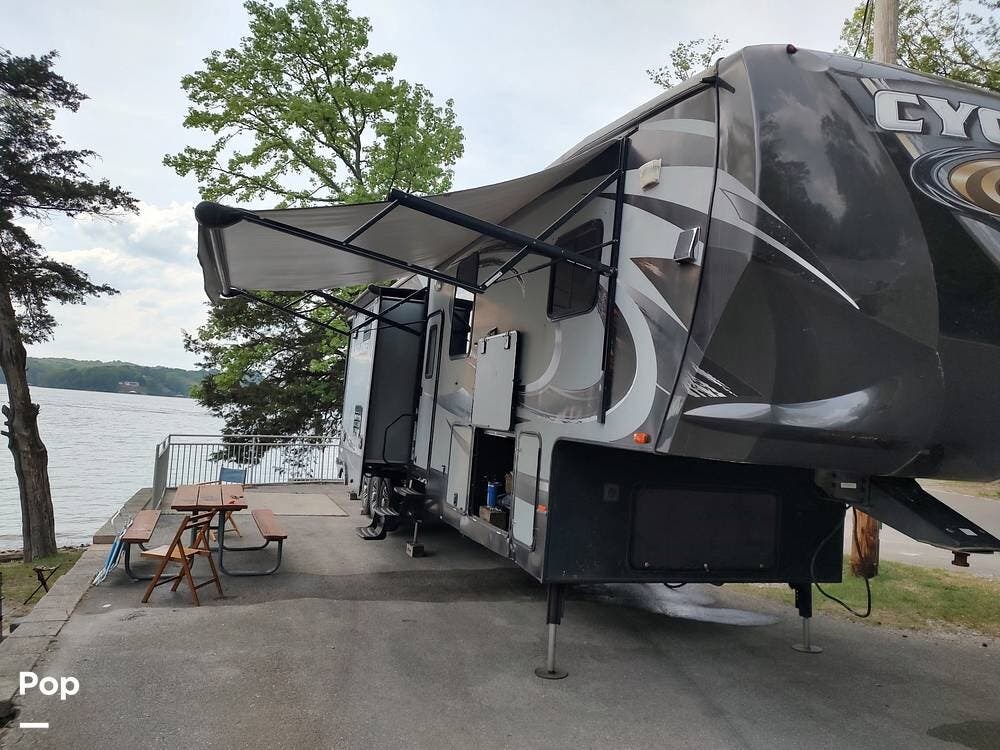 If you are looking for a nice Toyhauler RV, look no further than this 2014 Cyclone 3950 5th Wheel Toy Hauler by Heartland!