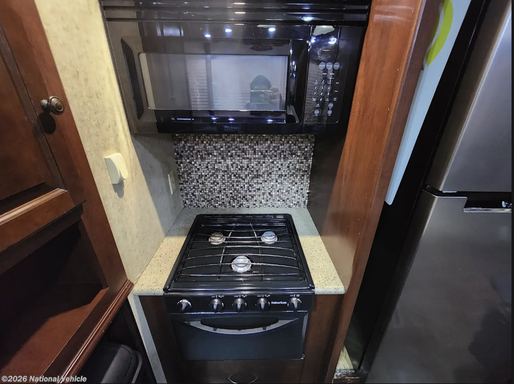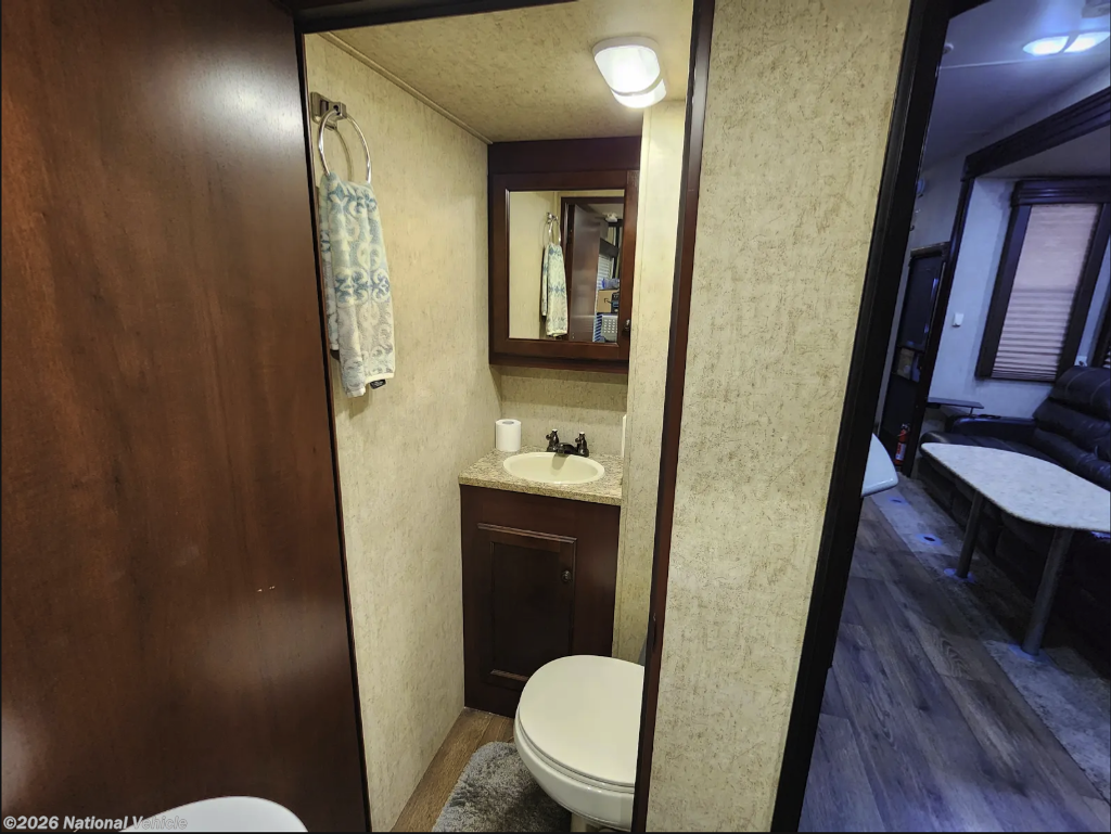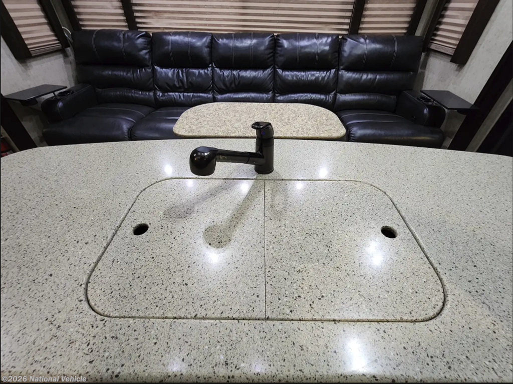 Indulge in refined comfort with plush seating, including a sofa with dual recliners, and a queen bed with convenient lift-up storage. Carefully crafted wardrobe closets provide elegant storage, while premium slide-out awning covers enhance both style and functionality. Integrated smoke detectors add safety with sophistication, creating a space that feels effortlessly luxurious.