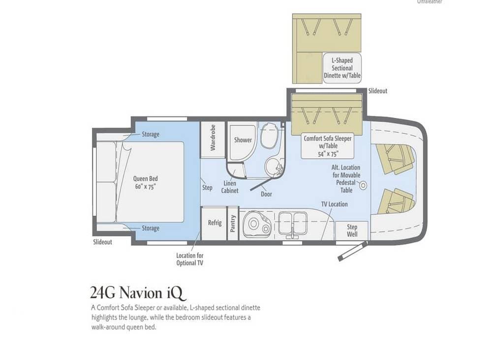 The 2014 Itasca Navion iQ 24G is a compact Class C diesel motorhome built on the Mercedes‑Benz Sprinter 3500 chassis, designed to offer easy drivability, good fuel efficiency, and a surprisingly upscale feel in a coach under roughly 26 feet long.