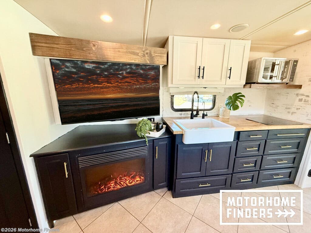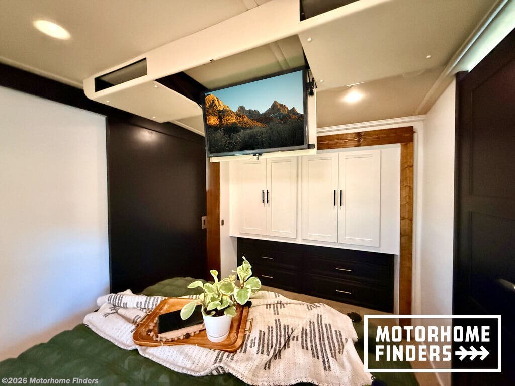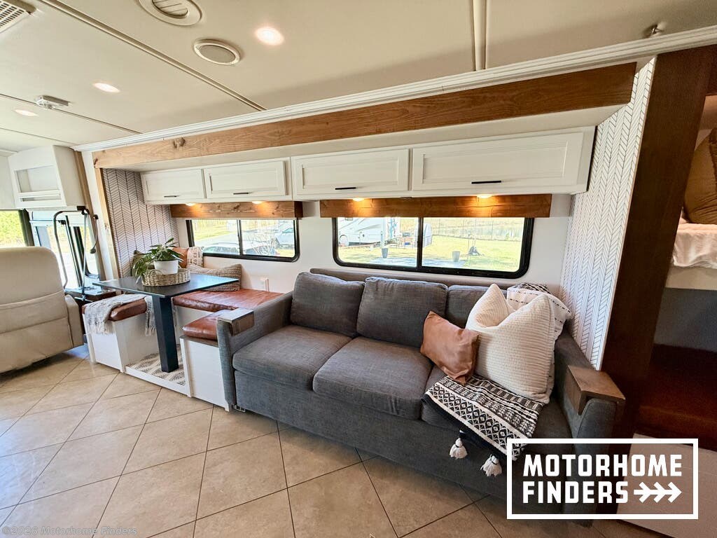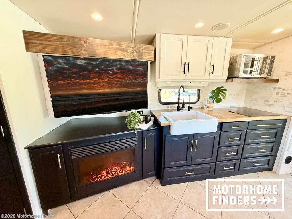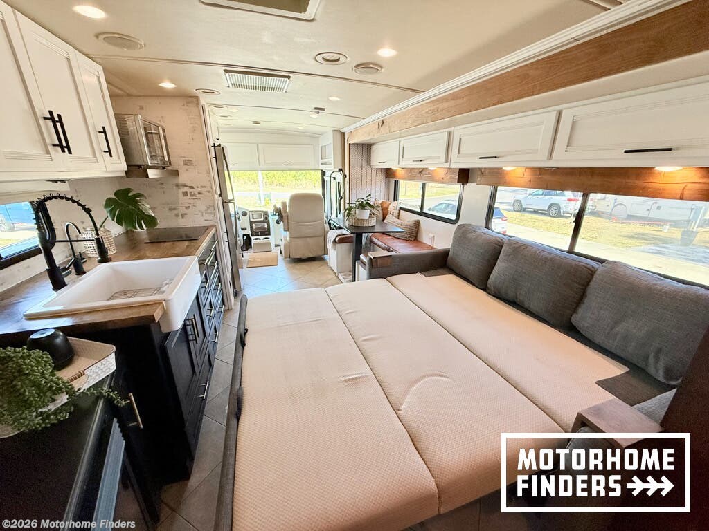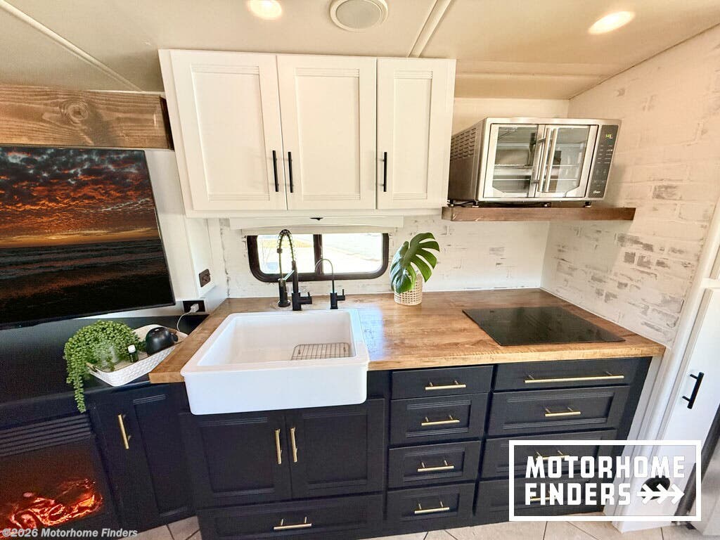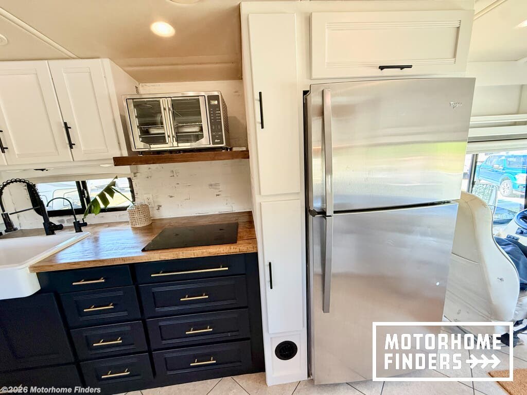 The 2014 Itasca Solei 38R is known for delivering diesel pusher comfort in a well-designed, livable floorplan, and this particular coach has been thoughtfully upgraded to enhance both everyday usability and off-grid capability. With over 2,000 watts of solar, a 600Ah lithium battery system, and Victron energy management, this motorhome is set up for serious energy independence while still offering the luxury touches expected from a bath-and-a-half diesel coach. Inside, the living space has been refreshed with painted cabinetry and a custom kitchen featuring a solid Ambrosia Maple countertop and farmhouse sink, creating a modern, residential feel throughout.