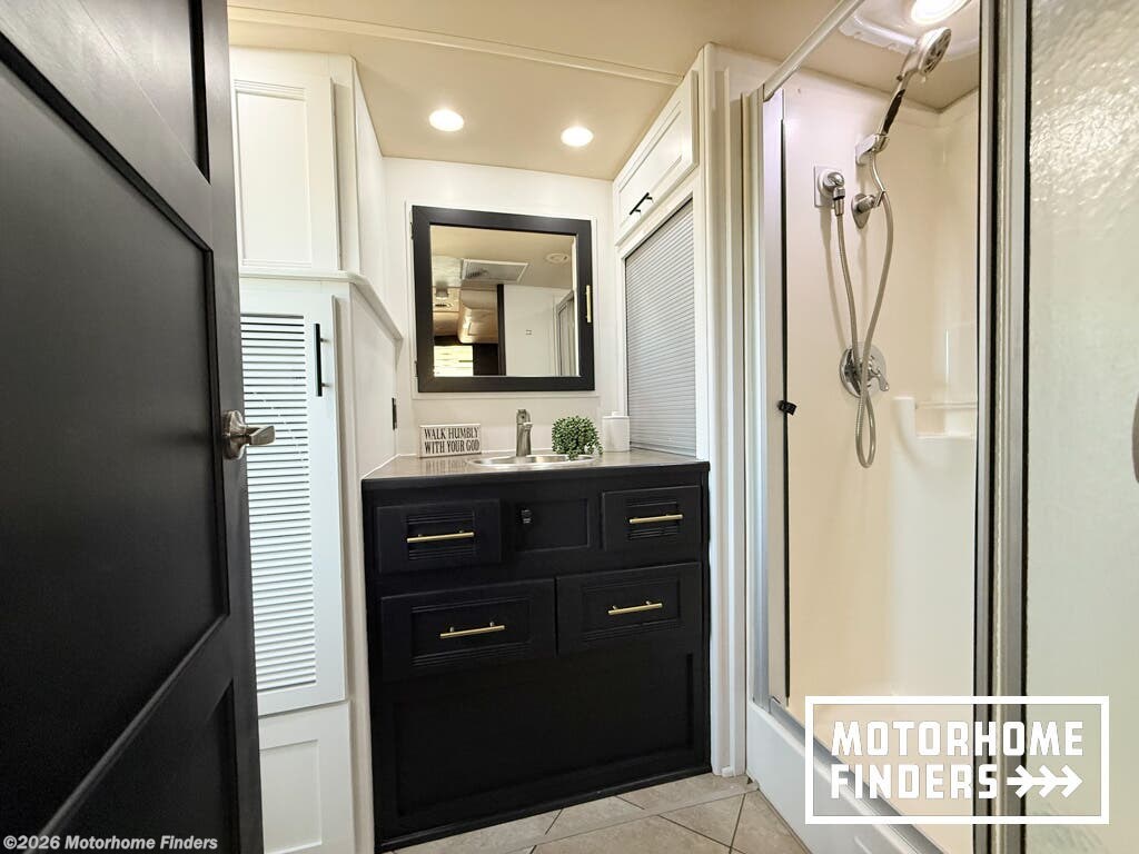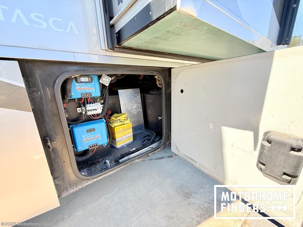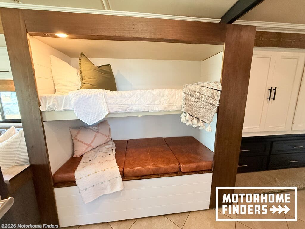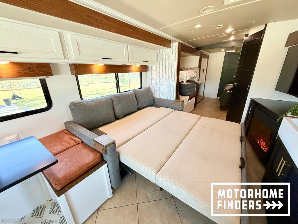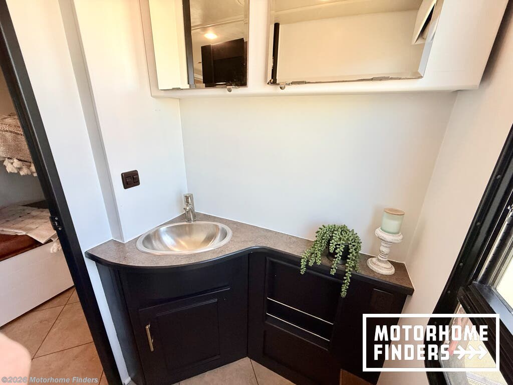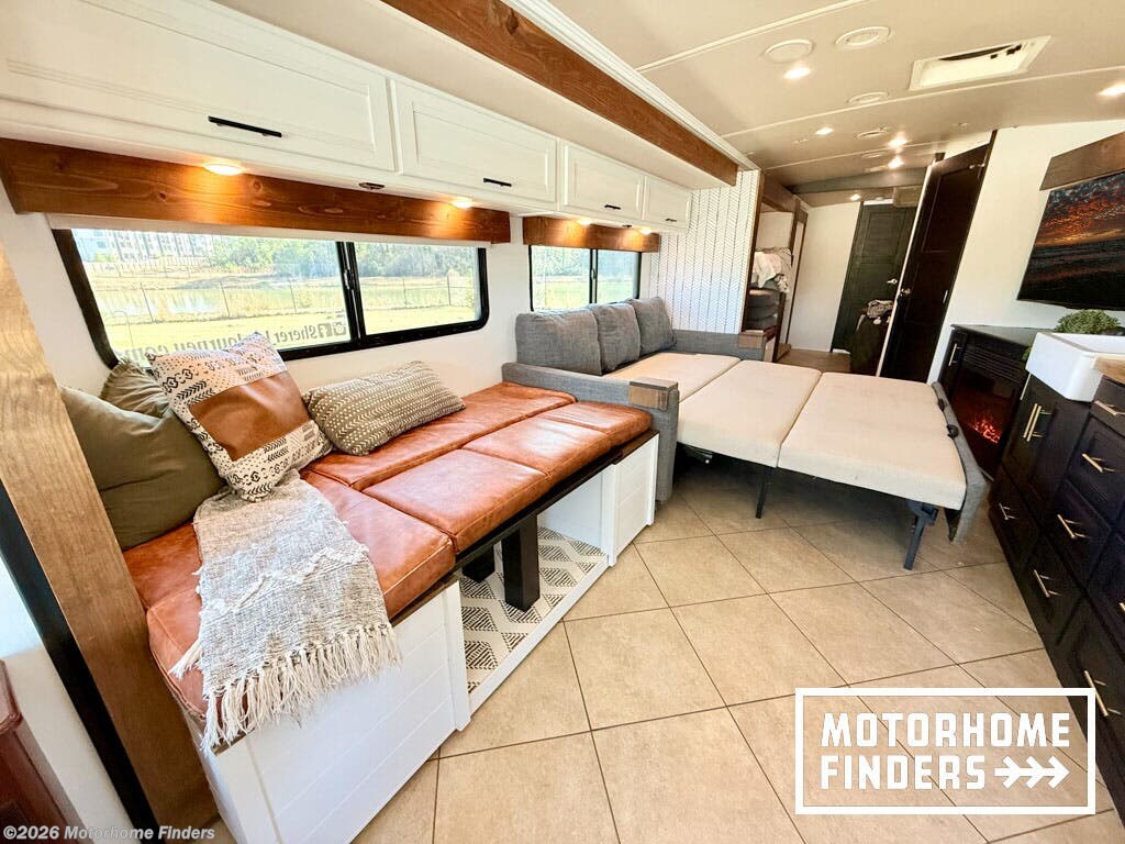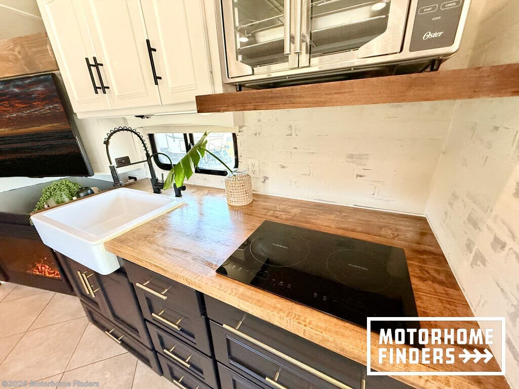 The 2014 Itasca Solei 38R is known for delivering diesel pusher comfort in a well-designed, livable floorplan, and this particular coach has been thoughtfully upgraded to enhance both everyday usability and off-grid capability. With over 2,000 watts of solar, a 600Ah lithium battery system, and Victron energy management, this motorhome is set up for serious energy independence while still offering the luxury touches expected from a bath-and-a-half diesel coach. Inside, the living space has been refreshed with painted cabinetry and a custom kitchen featuring a solid Ambrosia Maple countertop and farmhouse sink, creating a modern, residential feel throughout.