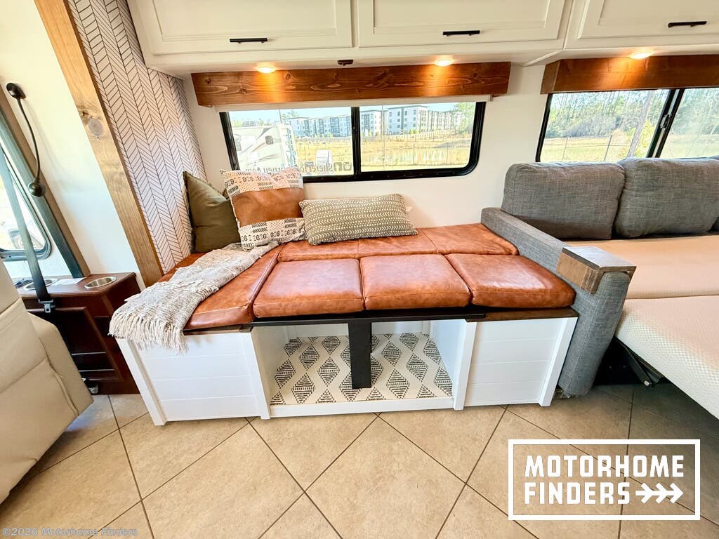 Custom U-Shaped Dinette with Storage – Provides excellent seating for meals and converts into an additional sleeping area.