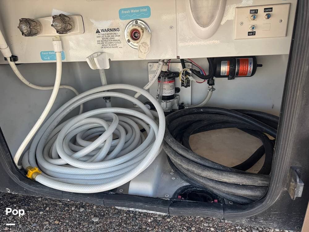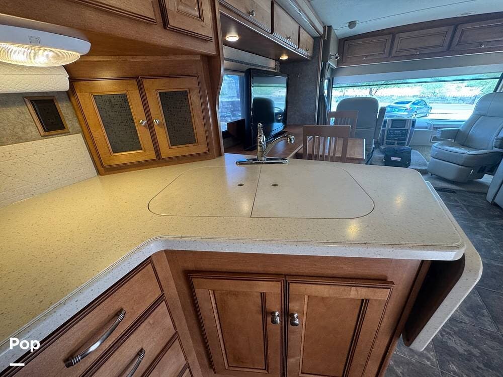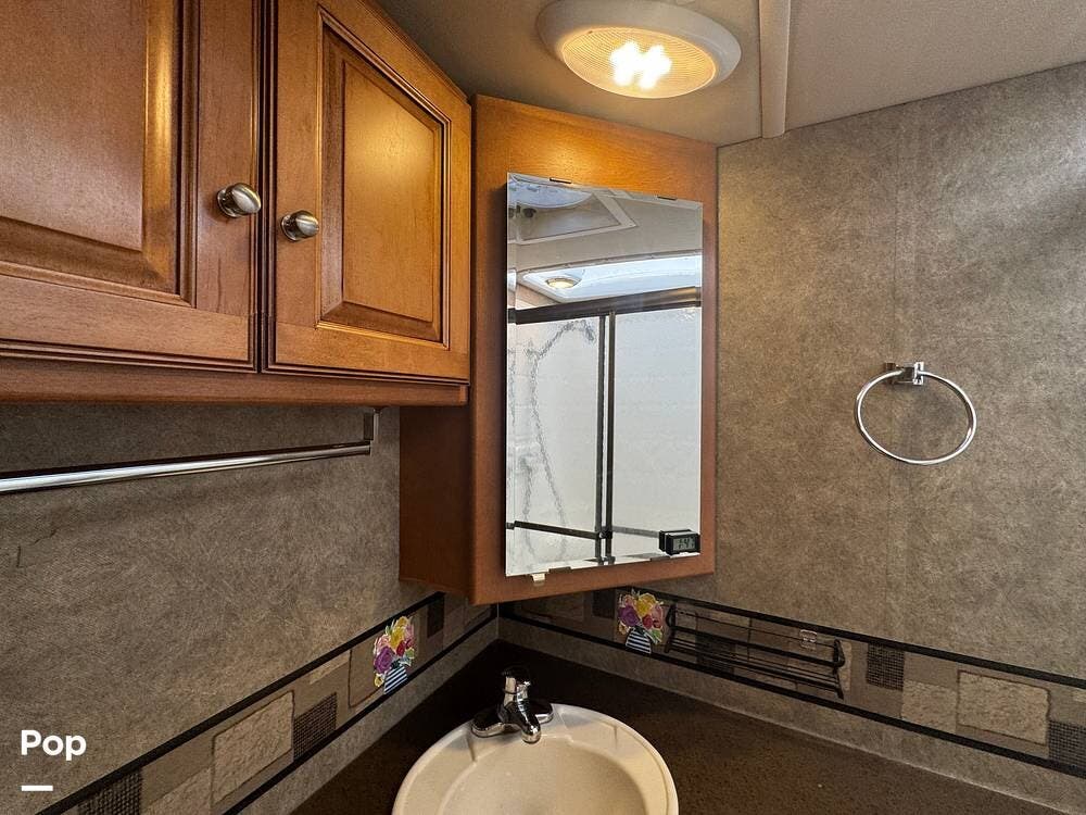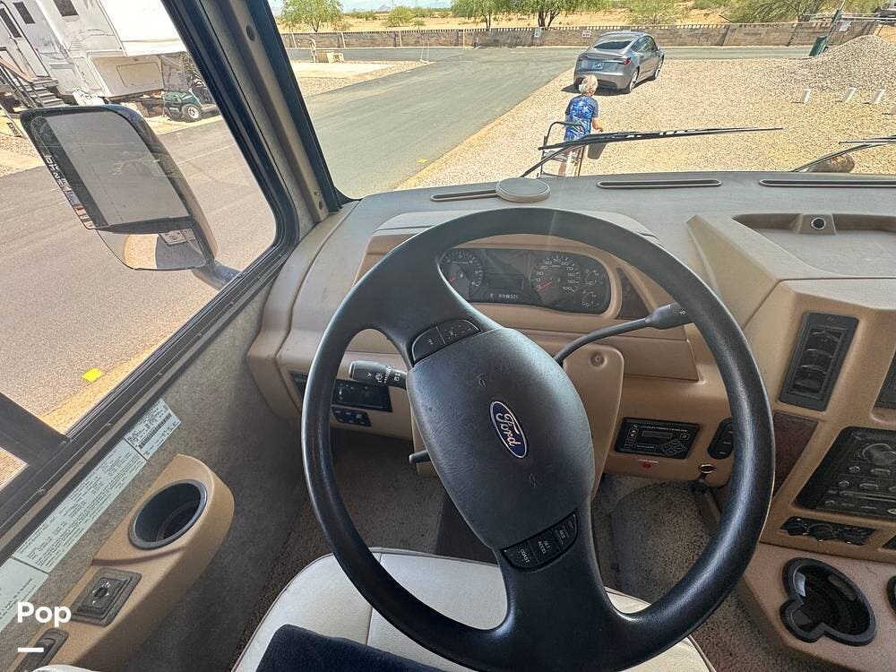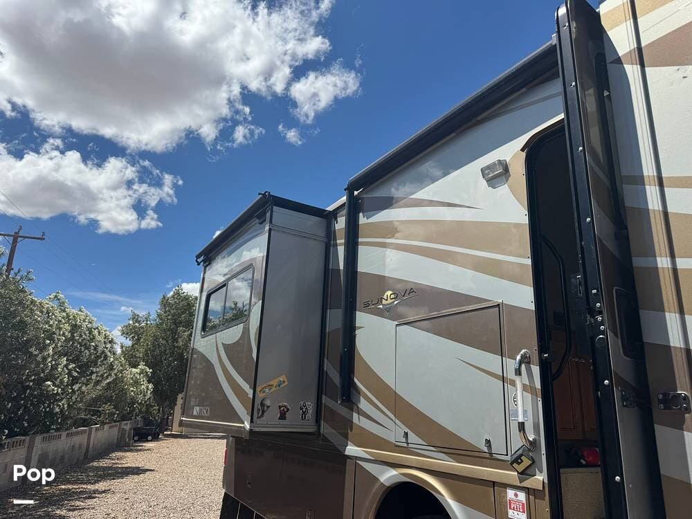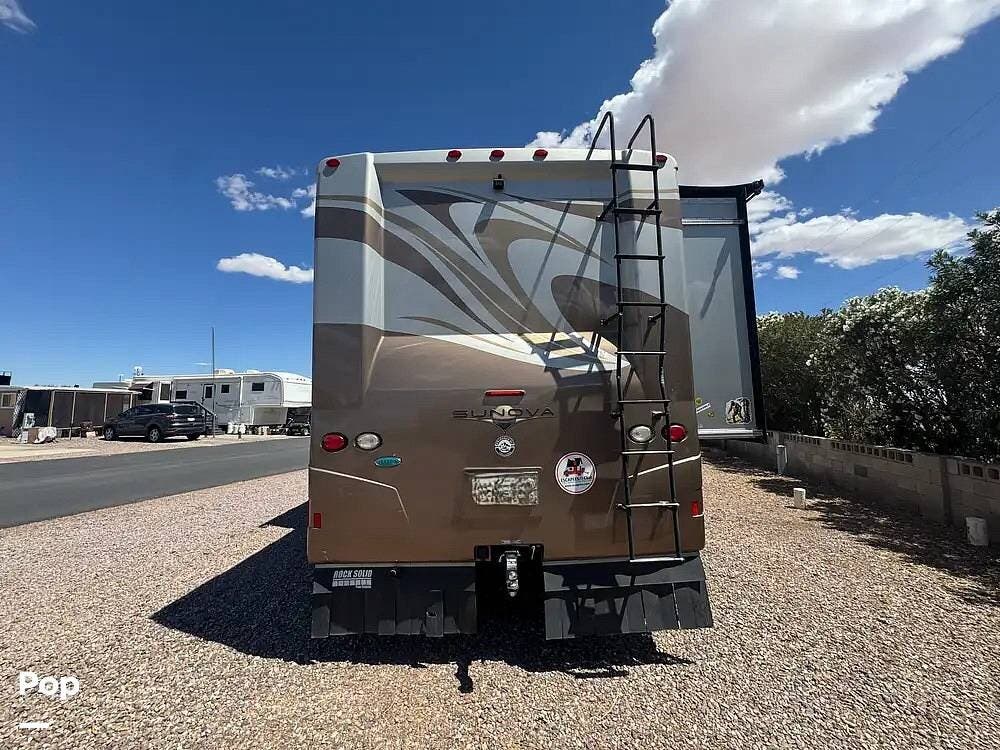 Under the hood, the Sunova 33C is powered by a Ford Triton 6.8L V10 engine producing 362 horsepower, paired with a TorqShift automatic transmission on a Ford F-Series Super Duty chassis. This setup provides reliable performance for highway cruising and towing up to 5,000 pounds, making it suitable for pulling a car or small trailer.