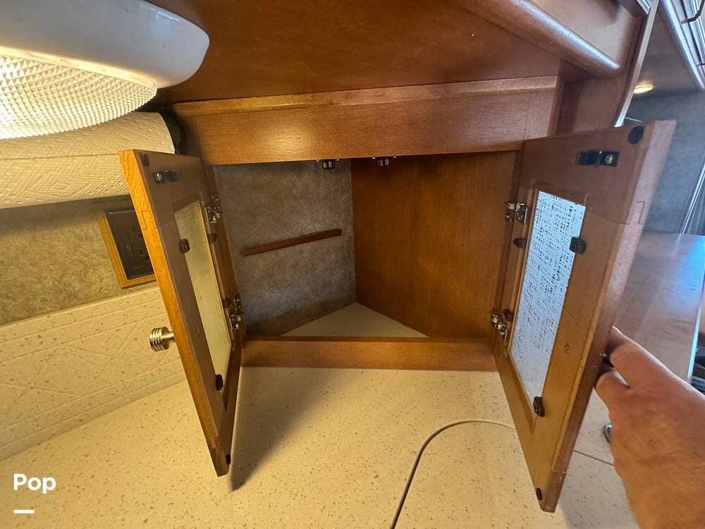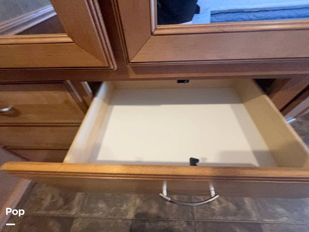 Toward the rear, the private master bedroom includes a walk-around queen bed, wardrobe storage, and additional cabinetry, creating a true "home away from home" environment.