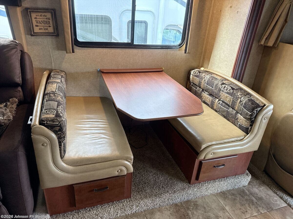 Introducing the 2014 Jayco Greyhawk 31FK Class C RV – a perfect blend of performance, comfort, and luxury, designed to elevate your traveling experience. ??? This used model is well-maintained and ready to accompany you on countless adventures with its durable construction and exceptional features. **Performance and Mechanical Features:** - Built on a Ford E-450 Chassis, ensuring reliable performance. - Powered by a Triton 6.8L EFI V10 Gas Engine delivering 305 HP and 420 lbs-ft of torque. - Equipped with a 5-Speed TorqShift Series Overdrive transmission and a 120-Amp alternator. - Features like rubber isolation body mounts, wheel liners, and a 5000# hitch with 7-pin connector enhance utility and durability. **Cab and Driver Convenience:** - Fiberglass running boards and remote keyless entry for added convenience. - A full cab-over bunk and dual airbags for safety and added sleeping space. - Includes a 6-way power driver seat and dash A/C for enhanced driving comfort. - Equipped with remote heated side mirrors and a vibrant 6.5-inch touchscreen infotainment system with DVD, USB, GPS, SiriusXM, and Bluetooth capabilities. - Backup and side-view monitors along with cruise control ensure a stress-free driving experience. **Living Spaces:** - Power patio awning with LED lights and a power double entry step for easy access. - Keyless entry touchpad door lock and an 80-inch tall entrance for height convenience. - Features vinyl flooring, high-intensity recessed LED lights, and an 84-inch high padded vinyl ceiling. - Includes lap safety belts on all seats for secure travel, frameless windows, and day-night roller shades. - Comes with a sofa Hide-a-Bed and cabinet door hidden hinges for a sleek look and functionality. **Dining and Kitchen:** - Dream dinette with storage drawers for convenient dining. - Solid surface countertops with integrated deep bowl sinks and sink covers. - Equipped with a high-rise faucet, designer backsplash, an 8-cubic foot flush mount refrigerator, 3-burner range with glass cover, microwave oven, and an outside portable gas grill. **Electronics and Entertainment:** - Central command center with wall thermostat and satellite dish prep. - Features a 26-inch or 32-inch digital LED HDTV and two marine-grade outdoor speakers for entertainment. **Sleeping Arrangements:** - Queen size Denver Mattress for a restful night's sleep. - Nightstands, overhead storage, and reading lights for added convenience. - Underbed storage provides extra space, and you’re accommodated with a 22-inch LED TV. **Bathroom Amenities:** - Includes a medicine cabinet, vanity sink, bathroom mirror, and shower skylight. - Designed with an ABS shower surround and a foot flush toilet for ease of use. **Additional Features:** - Slide-out battery tray, 4.0 Onan MicroQuiet generator with auto changeover. - 56-pound LP tank, 30-amp service cord, 120v GFCI outdoor receptacle, and 60-amp power converter. - 400-watt inverter, 15k A/C heat pump, 31k auto-ignite furnace, and 12v holding tank heat pads. - Includes a tankless hot water system and an outdoor shower. **Build Quality:** - Welded aluminum structure with bead foam insulation. - Tuff-Shell laminate construction and fiberglass exterior with seamless fiberglass front cap. - Features seamless rubber roofing, pass-through storage light (vbm), slam latch cargo doors, and a third brake light for safety and ease of access. This 2014 Jayco Greyhawk 31FK combines modern amenities with robust mechanical features for a truly versatile Class C RV. Ready to explore more? ????