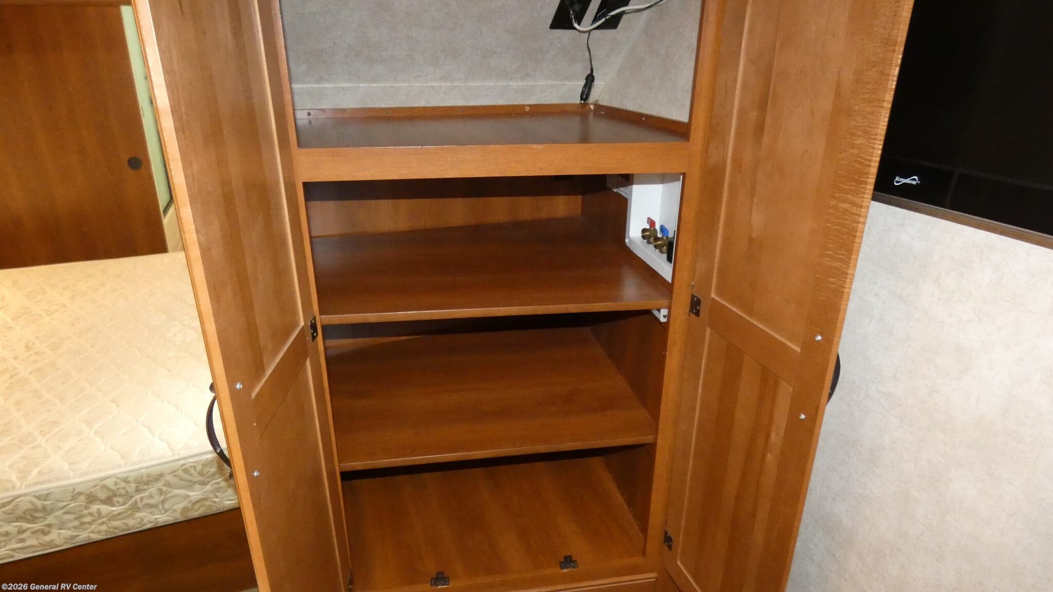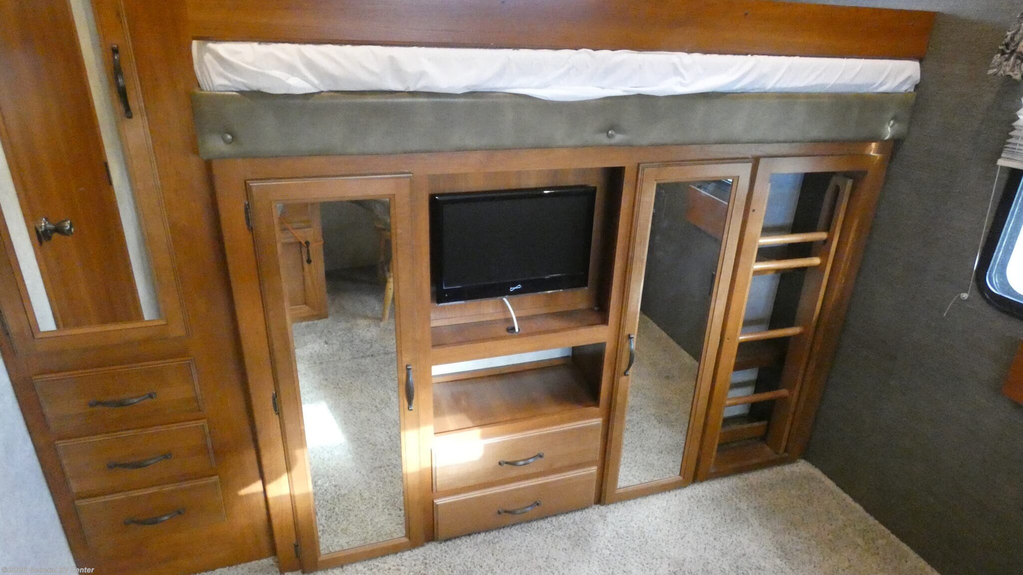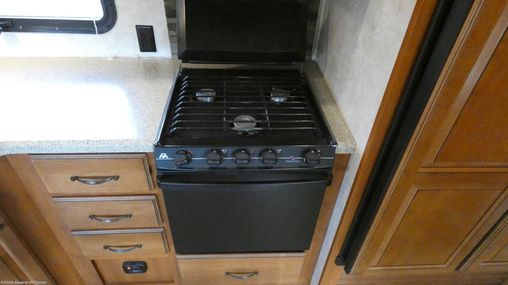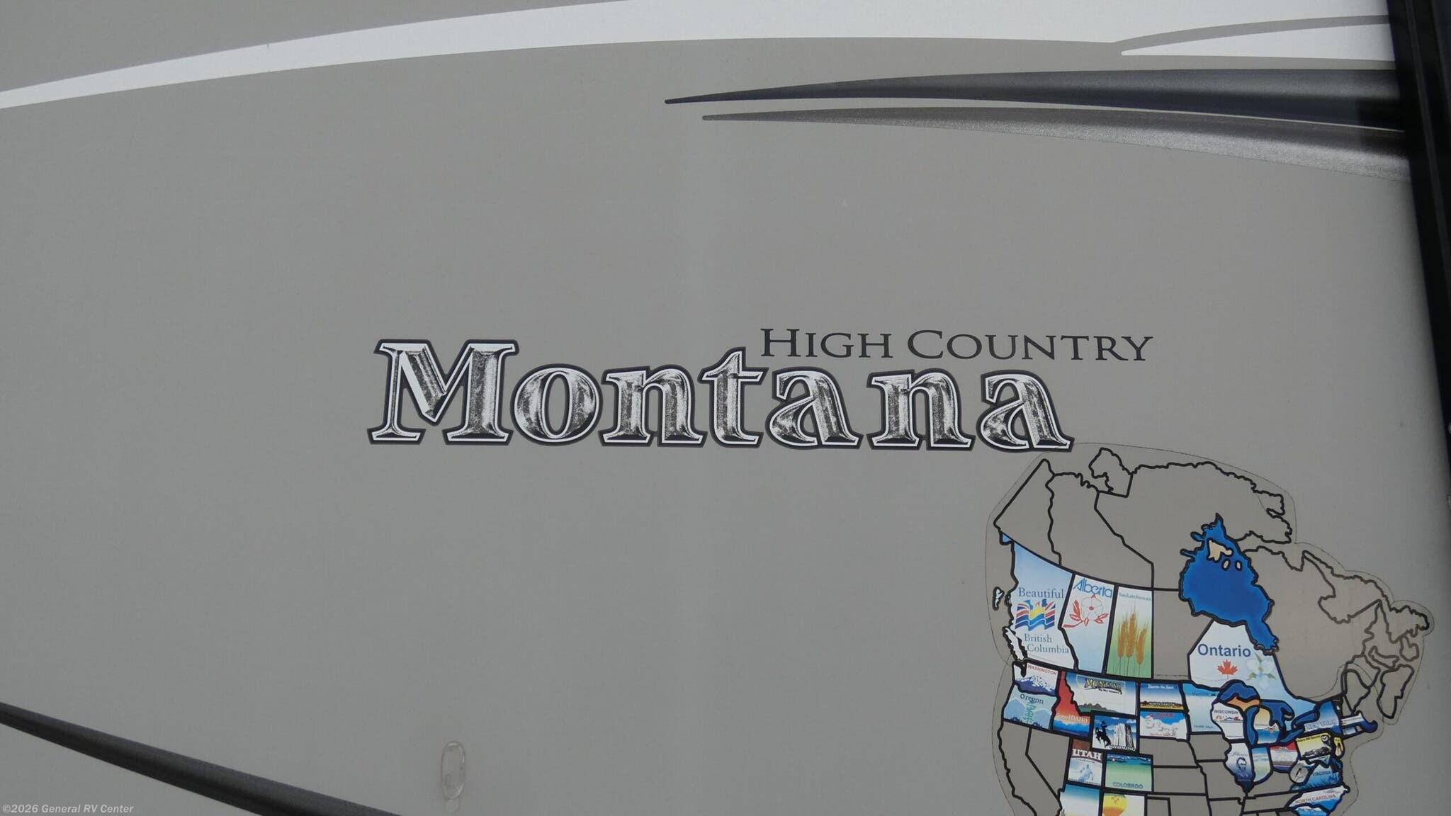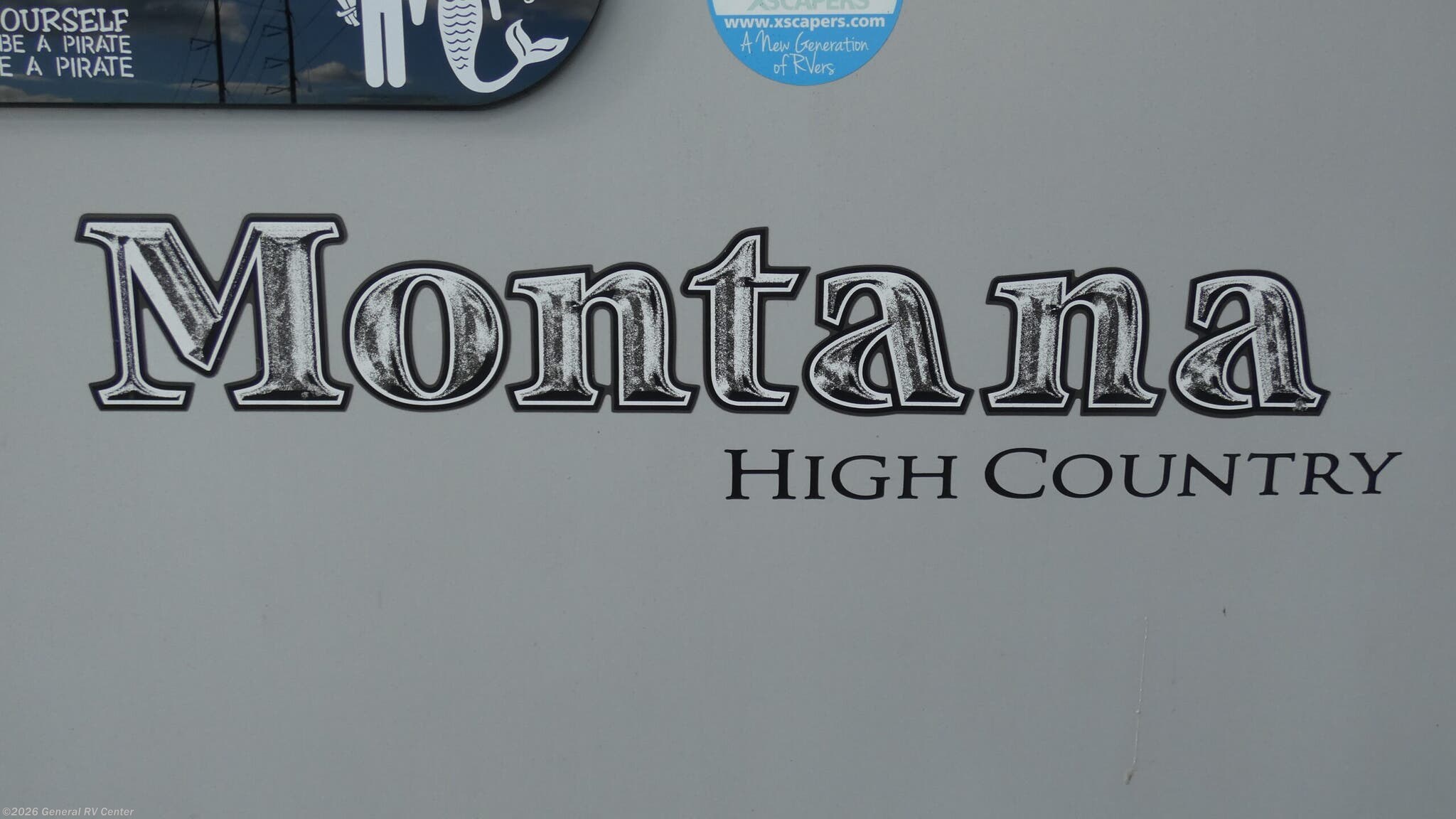The perfect Montana High Country model for a larger family to enjoy is this 338DB. With triple slides, a bunkhouse for the kids, and a exterior kitchen with bumper mount grill, you will have everything you need to enjoy spending time away from home! Before you step inside check out the exterior kitchen beneath the bunk room. There is a refrigerator, single sink, outside pantry, swing out camp stove, and bumper mount grill for the chef in the family to enjoy! Step inside and find that inside you won't have any trouble cooking or preparing food either with all that is provided. There is a refrigerator, pantry, three burner range with microwave oven, and double kitchen sink, plus overhead storage as well. Opposite the kitchen there is a large slide out that features a hide-a-bed sofa and optional free standing dinette or standard booth style seating. The sofa has an overhead cabinet for storage and both can easily view the entertainment center nearby featuring an HD TV with optional fireplace below. Step up in front to a walk-through bath where there is a private toilet and sink area on the right and 48" x 30" shower on the left. Use a sliding door at the top of the steps and one to close off the bath from the front bedroom for privacy. The front master bedroom offers a quiet retreat with a queen bed slide, dresser with HD TV opposite, and front storage closets with washer and dryer prep. The rear of this fifth wheel is where the kids will want to hang out. There is a hide-a-bed sofa slide with a bunk above on the right side, and a TV entertainment center wardrobe with bunk above on the left. You will also find a closet to store clothing in and more, plus there is plenty of space for everyone to enjoy!