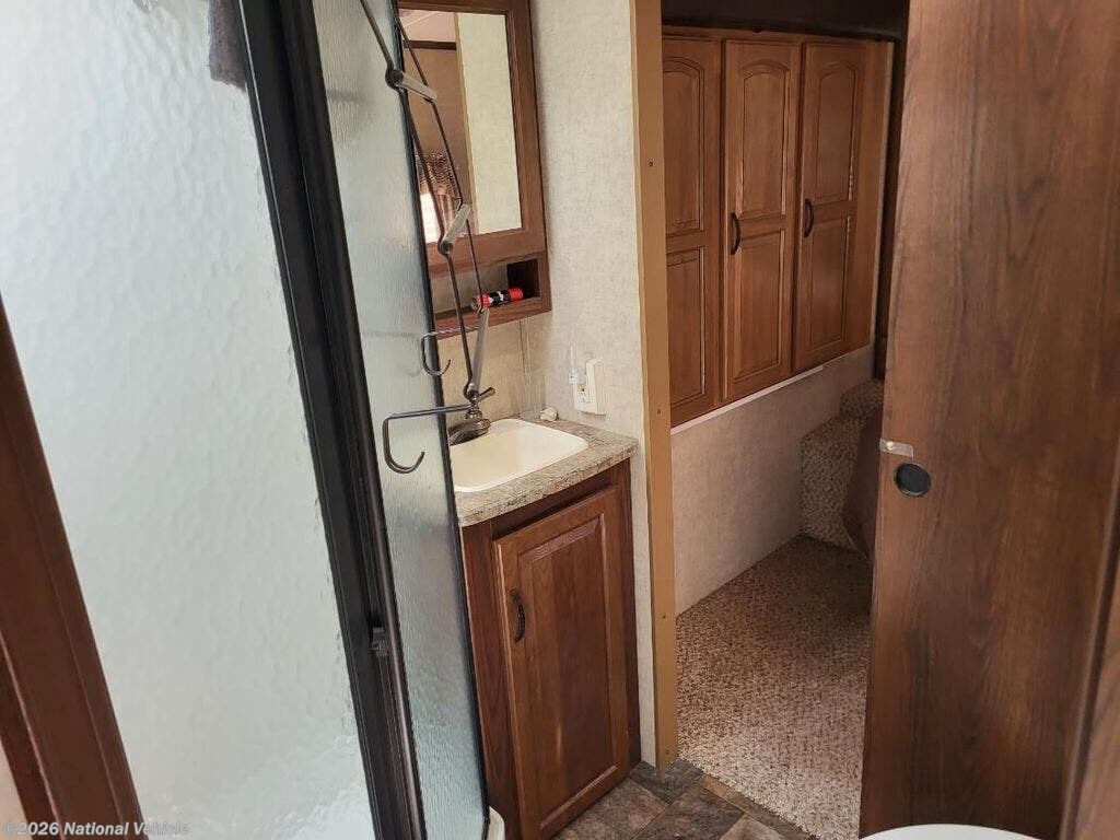 The fully equipped kitchen is ready for real cooking on the road. You?ll find generous counter space, a deep sink, microwave, oven, stovetop, and a roomy refrigerator. There?s plenty of cabinet storage for cookware, food, and supplies, making extended trips simple and convenient.