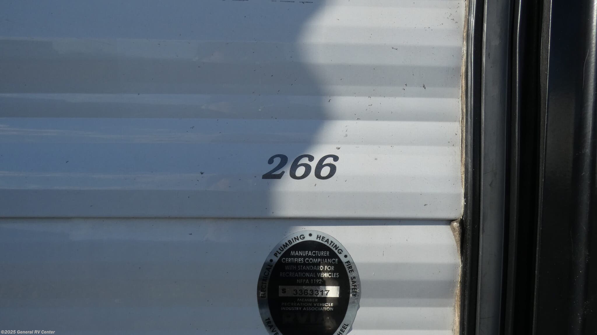 Camp comfortably in this Keystone Springdale travel trailer model 266RLSSR featuring double entry doors, a rear living area layout, and a large slide for added interior space. Enter the rear most door and see two lounge chairs along the rear wall with an end table between and overhead storage the entire width of the room. Straight ahead there is a tri-fold sofa and u-shaped dinette slide. A nearby entertainment center can easily be viewed from any seating in the room. To the right of the rear most door find kitchen amenities that allow you to easily cook food for your family. There is a large basin sink, three burner range, and refrigerator to keep your perishable things cold and fresh. As you continue toward the front you will find just beyond the kitchen area a bathroom that features a tub/shower, toilet and vanity with sink. A sliding door just passed the bath lead directly into the front bedroom which provides a private entry door to the outside. You will find storage above the head of the bed, in the dual beside closets and nightstand, plus in the front pass-through compartment outside, and so much more!