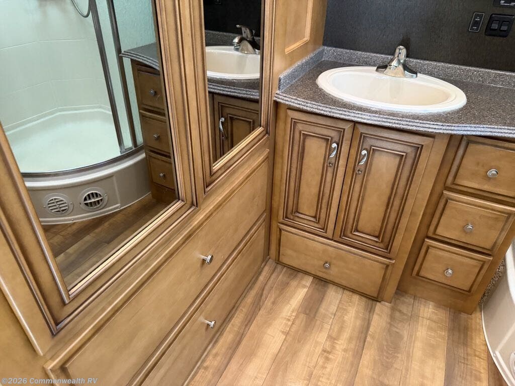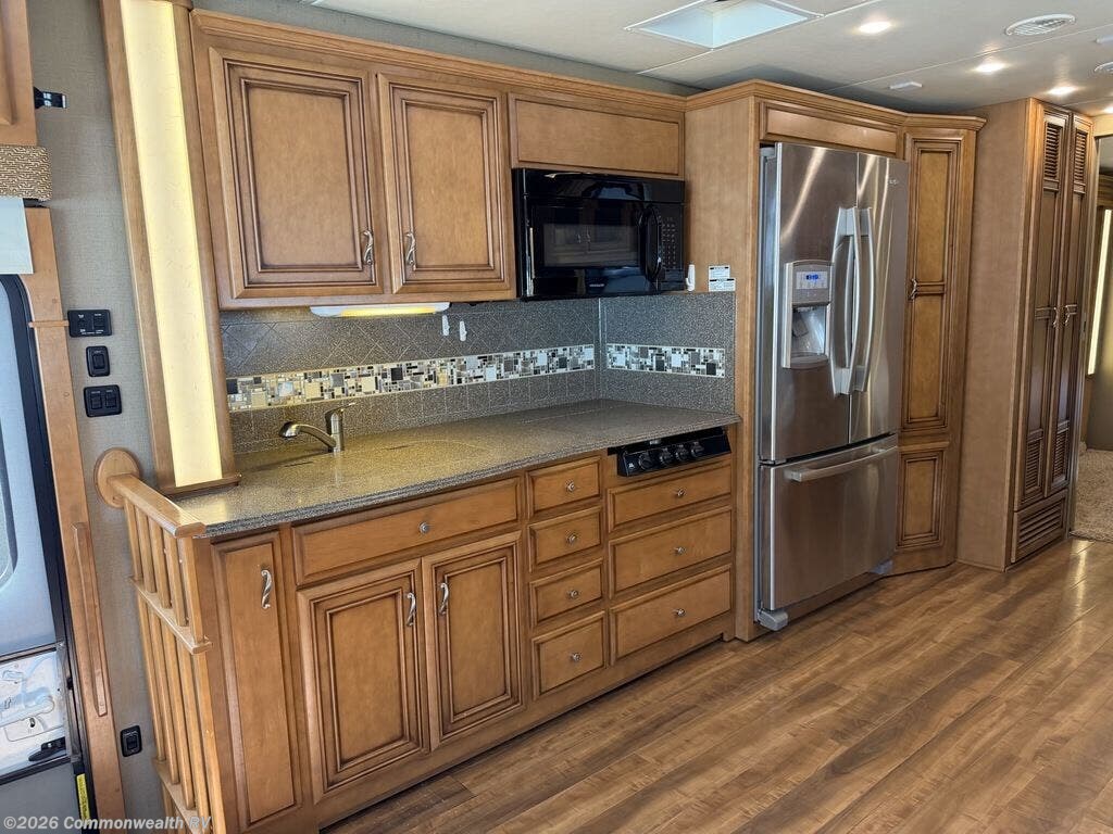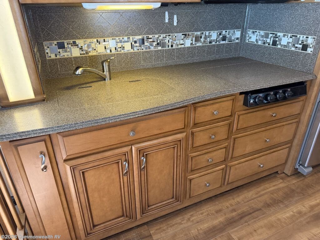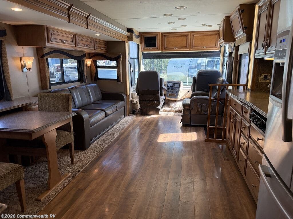 The design creates the open, residential feel many buyers associate with diesel pushers, giving you comfortable living space whether traveling or parked long-term.
